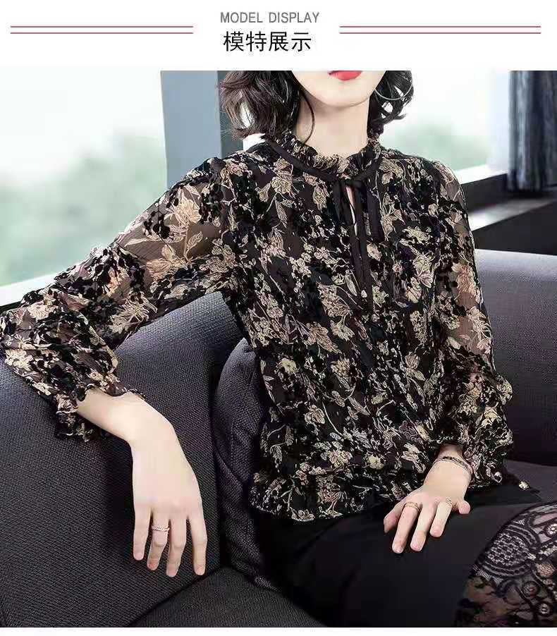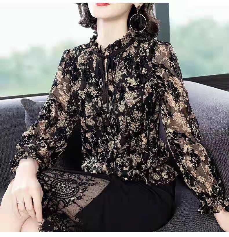 꽃무늬 쉬폰 셔츠 여성의 긴팔 2020 가을과 겨울 탑 유행 느슨한 여성의 세련된 기모 베이스 셔츠스토어 가기