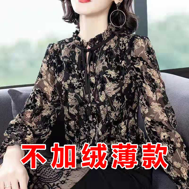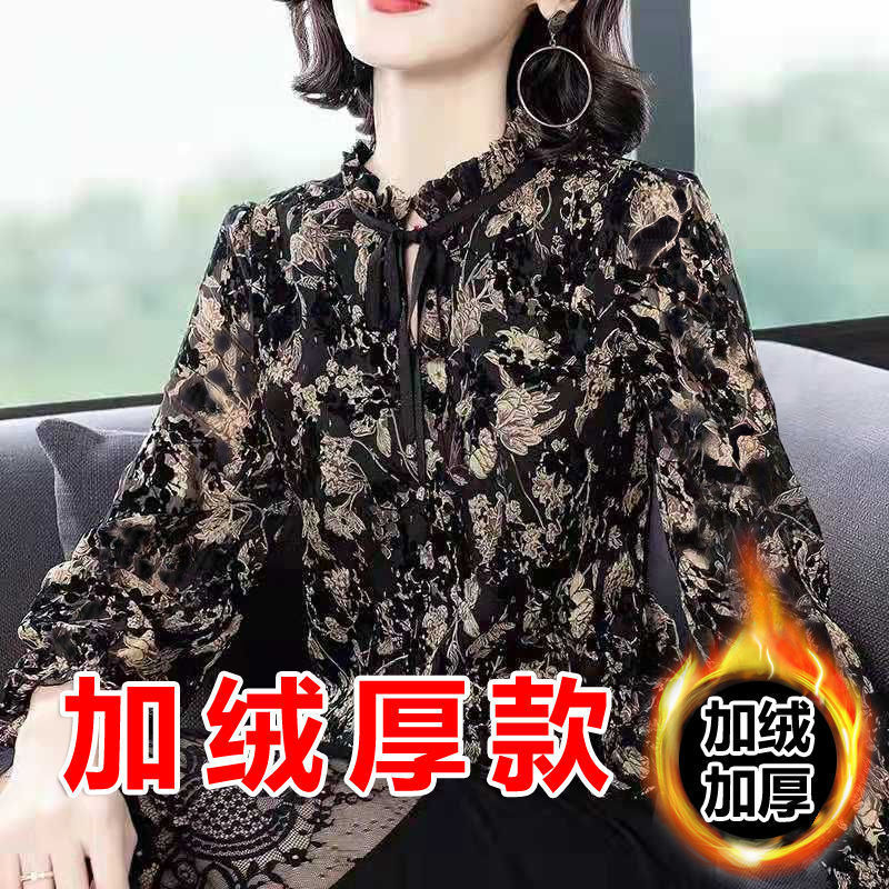 꽃무늬 쉬폰 셔츠 여성의 긴팔 2020 가을과 겨울 탑 유행 느슨한 여성의 세련된 기모 베이스 셔츠