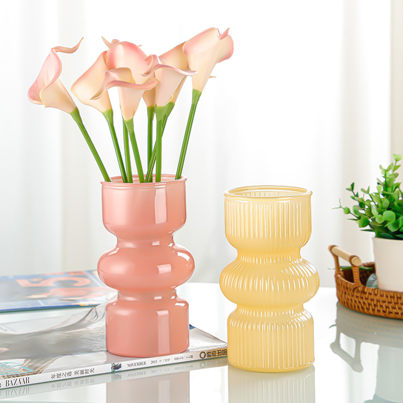 새로운 수직 패턴 풍부한 대나무 유리 꽃병 다채로운 꽃 백합 꽃병 거실 장식 유럽 꽃병스토어 가기
