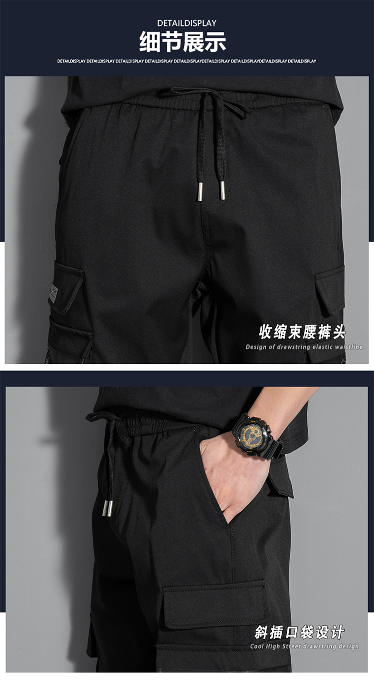 2021 바지 남성용 바위 바지 봄과 여름 한국 스타일 유행 모든 경기 다리 묶기 레저 스포츠 중학생 바지 트렌디 브랜드스토어 가기