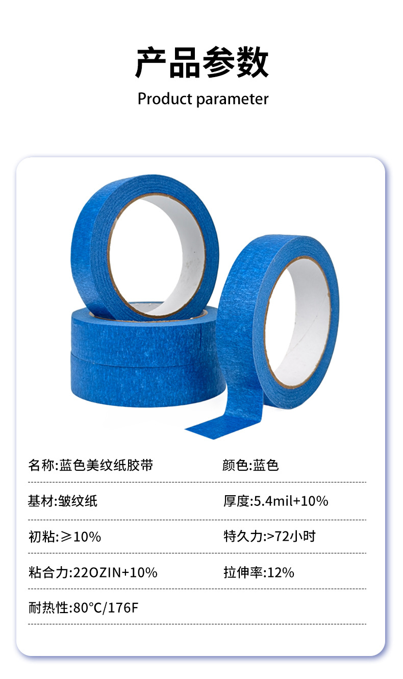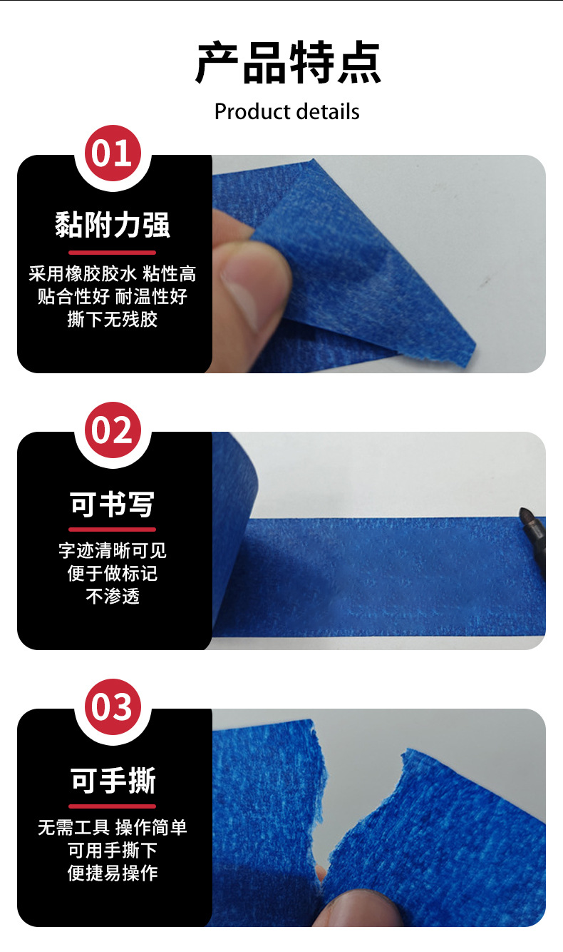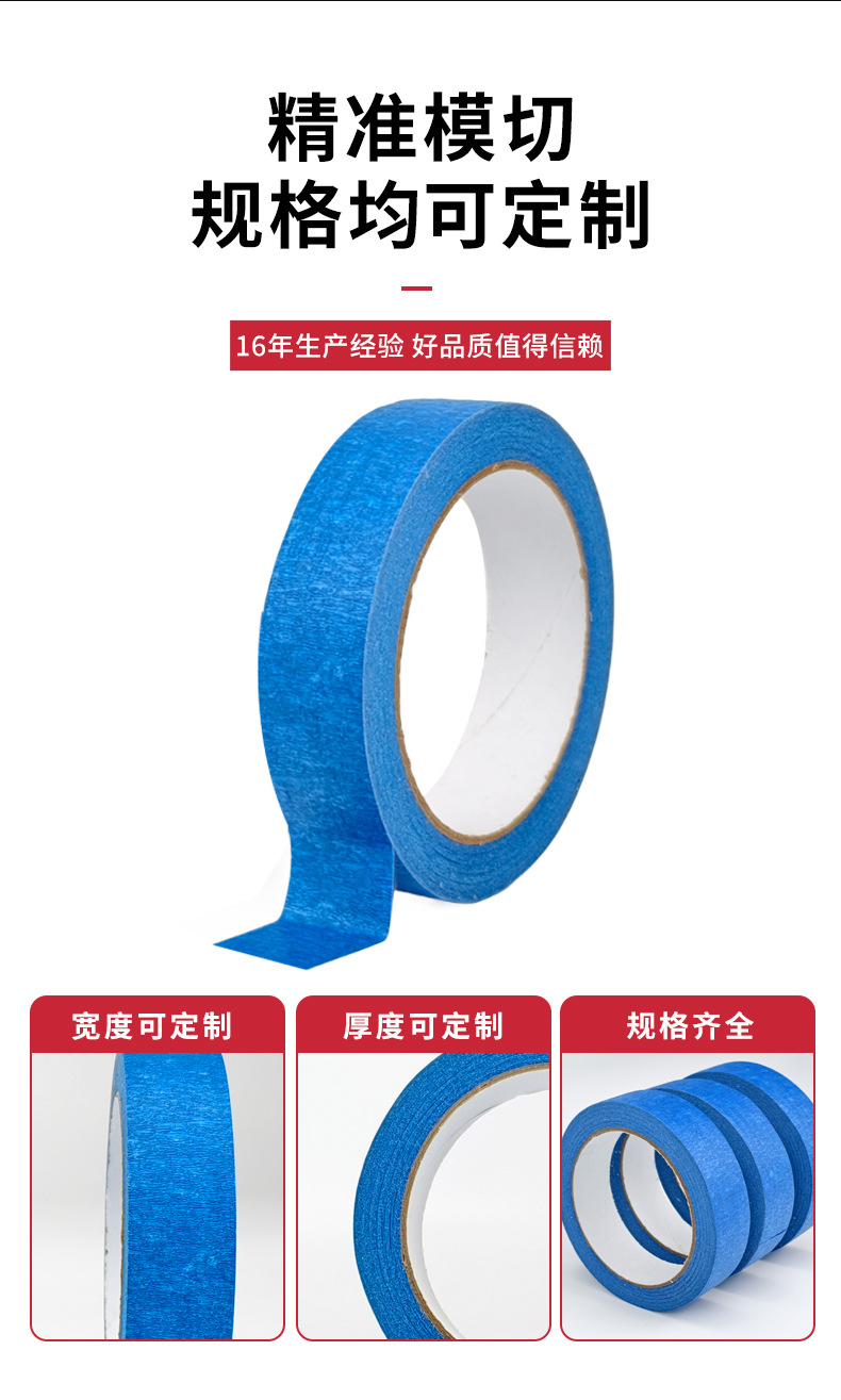 컬러 마스킹 테이프 크레이프 종이 자동차 페인트 마스킹 테이프 쓰기 가능 테이프 블루 마스킹 테이프