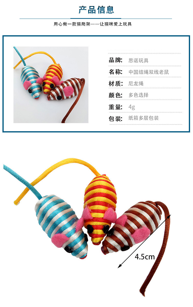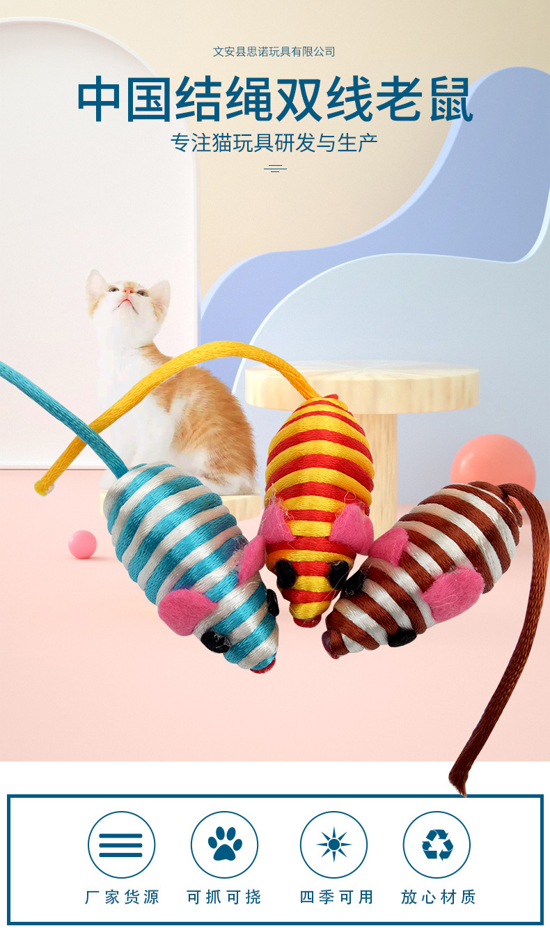 공장 도매 애완 동물 보컬 가정용 애무 고양이 반지 고양이 니블 장난감 중국 매듭 로프 코튼 로프 더블 라인 마우스스토어 가기