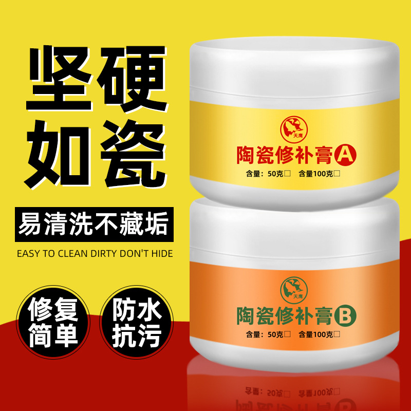 天鹰牌陶瓷修补膏综合了塑粘剂、填补剂、刚性修复材料和结极防水性和耐腐蚀性以及极小的固化收缩率和良好的机械性能等。具有修补、粘接、堵漏等功能,可广泛用于装饰工程、防水工程、居家维修、物业修缮、管道施工和抢修,给排水系统修缮等。是名副其实的万能修补剂。高接着强度,陶瓷修补膏可与任何硬材质结构成一体。抗紫外线、耐高温、不收缩、不变形、不龟裂。陶瓷修补膏耐酸碱、溶剂、化学药品腐蚀;抗氧化、不燃性、不导电、绝缘性佳。可行车、铣、钻、磨、削等后续加工,硬度高、韧性强。结构坚固、密度高、耐拉、抗折、抗击。陶瓷修补膏能有效地修复各种硬质材料的表面损伤,包括局部缺损﹑断裂﹑磨损﹑穿孔﹑针孔等,对卫生洁具(包括:陶瓷﹑亚克力﹑玻璃钢﹑碳纤维等复合材料)﹑汽车﹑家具﹑仪器设备等修补和代替玻璃胶做浴缸边效果尤佳。 可在不同环境中使用,应用范围广泛、使用场合繁多,是居家、办公、建筑、工业等领域必备之用品。