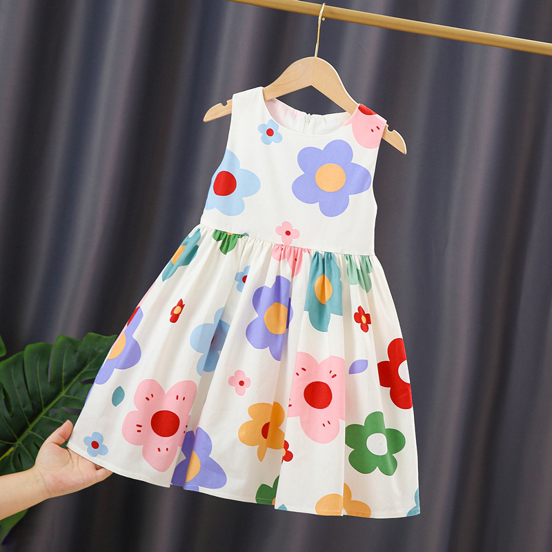 여자 여름 드레스 2024 새로운 어린이 여름 민소매 면화 스커트 어린 소녀 스타일 조끼 공주 드레스스토어 가기
