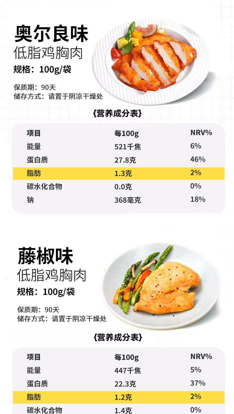 바로 먹을 수 있는 닭가슴살 저지방 고기 간식 피트니스 추천 식사 대체 식품 포만감 간식 무료 배송 100g 봉지 제조업체스토어 가기