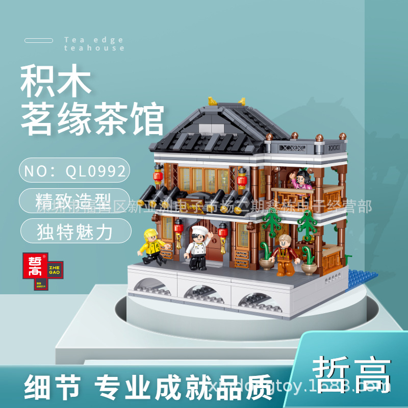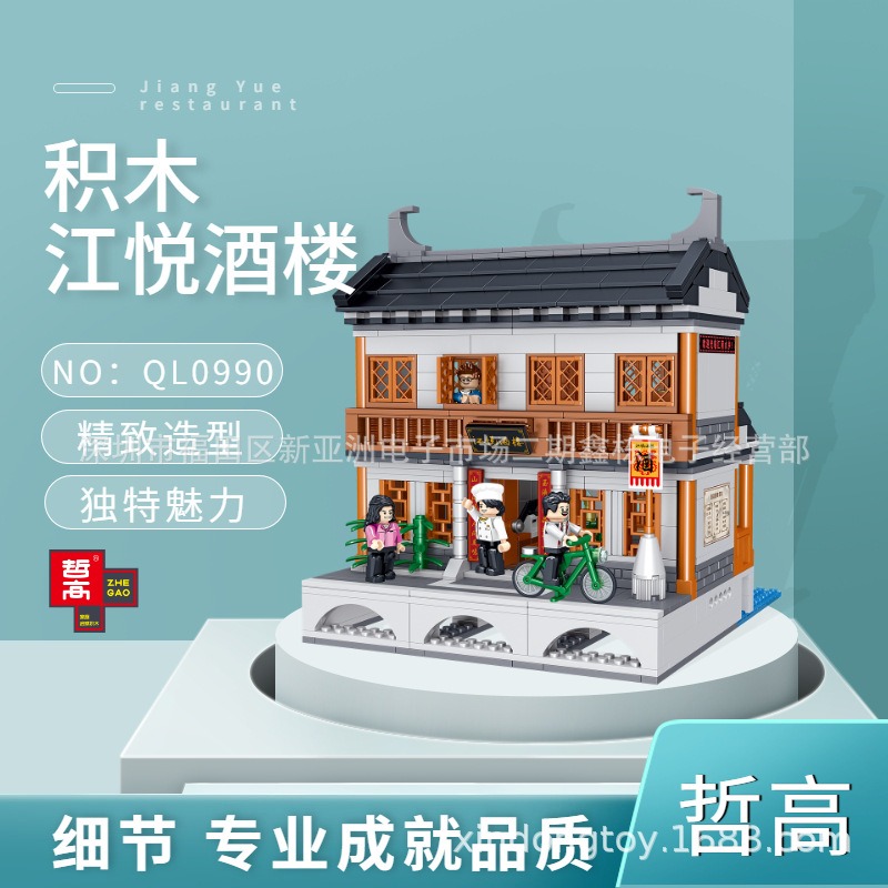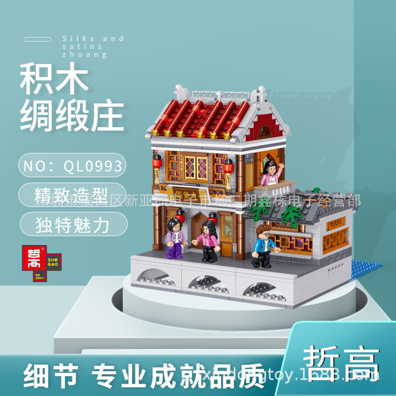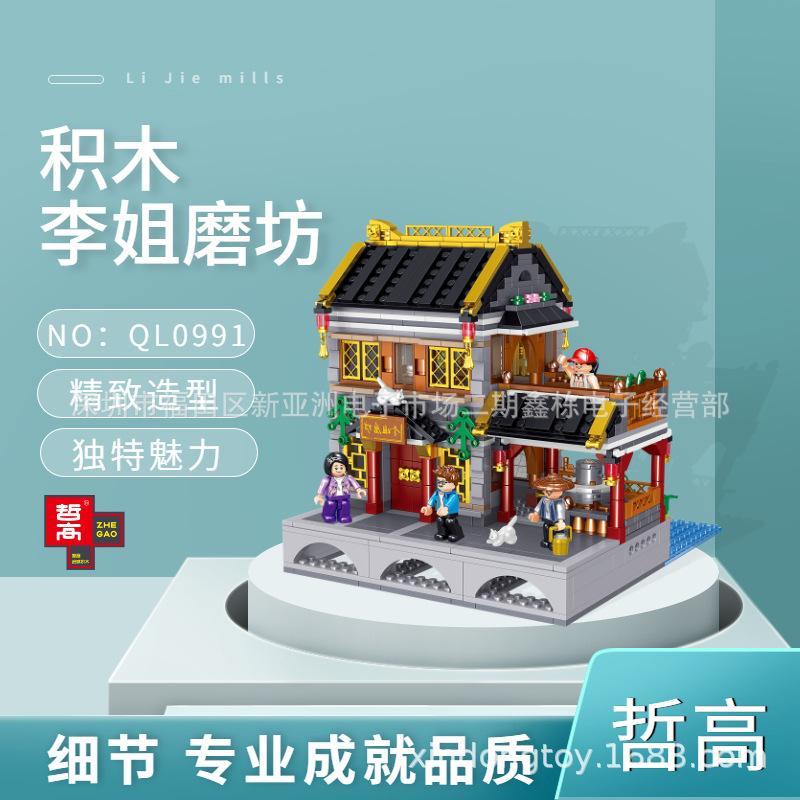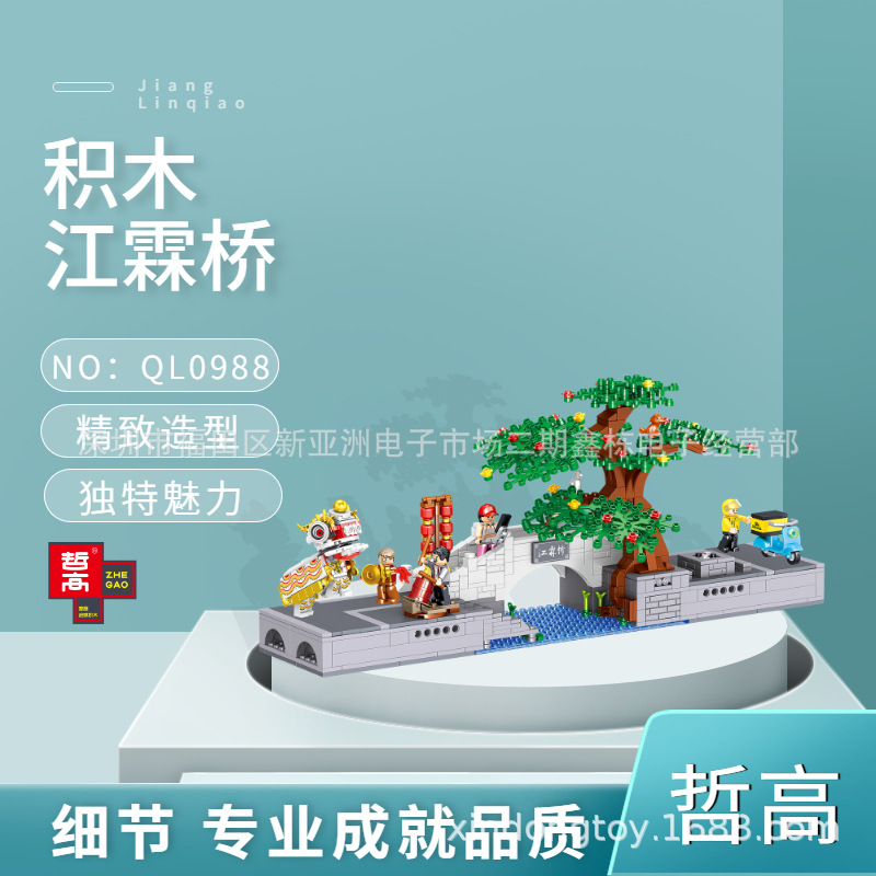Zhe Gao QL0988-93 중국 스타일 장난 워터 타운 장린 다리 실크와 새틴 마을 난트 퍼즐 조립 빌딩 블록 장난감스토어 가기