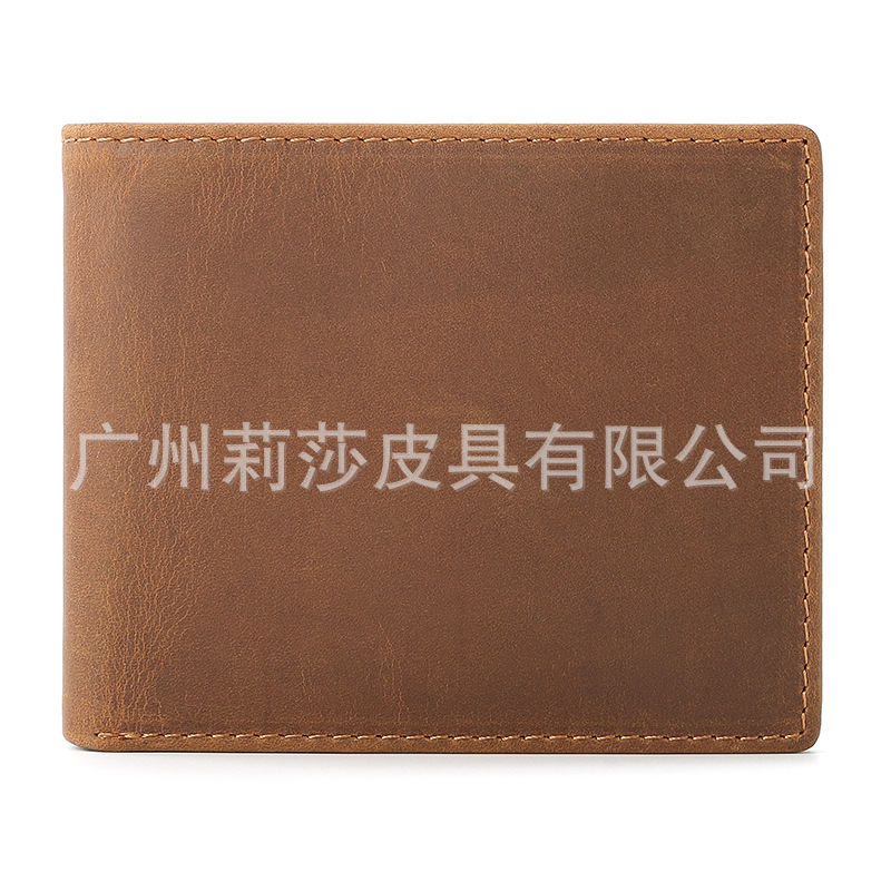 RFID 달러 클립 크레이지 호스 가죽 남성용 지갑 가로 카드 가방 정품 가죽 지갑 첫 번째 레이어 소 가죽 남성용 가방 공장 배치스토어 가기