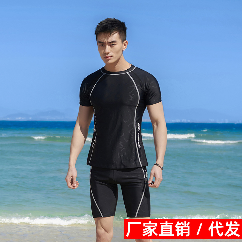 속건성 태양 보호를 세트 새로운 남성용 스플릿 수영복 반팔 5 점 바지 학생 수영복 훈련 전문 맞춤화 배우기스토어 가기