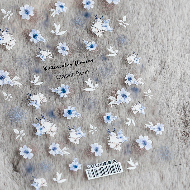 TENSOR 일본 5D 얇은 터프 수채화 꽃 네일 스티커 프로 얇은 투명 접착 네일 스티커 나비 시안 TS521