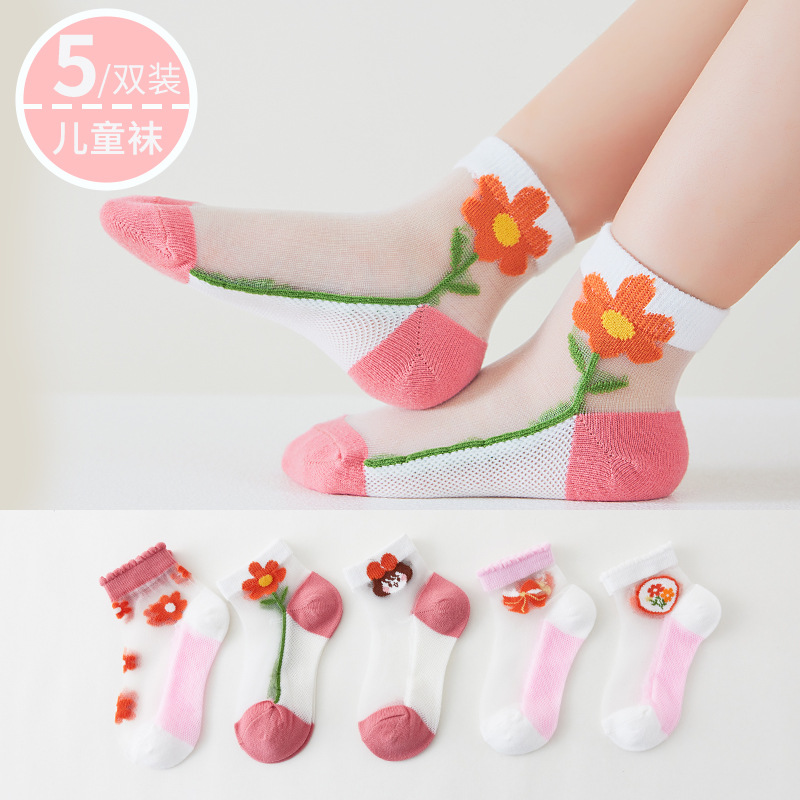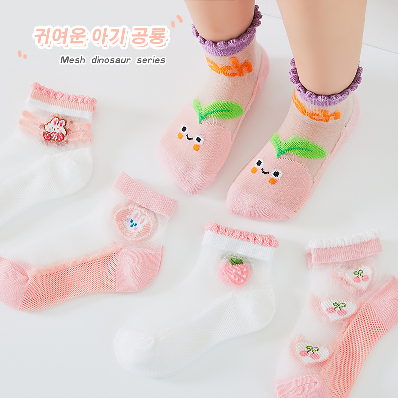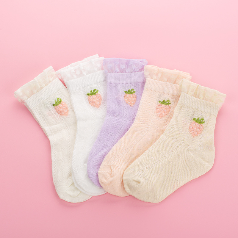 Bainuo 어린이 양말 봄과 여름 얇은 메쉬 통기성 코튼 딸기 공주 만화 귀여운 소녀 스포츠 양말스토어 가기