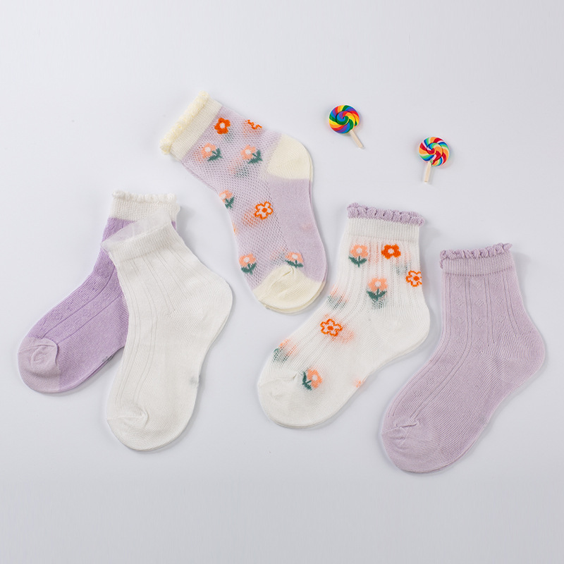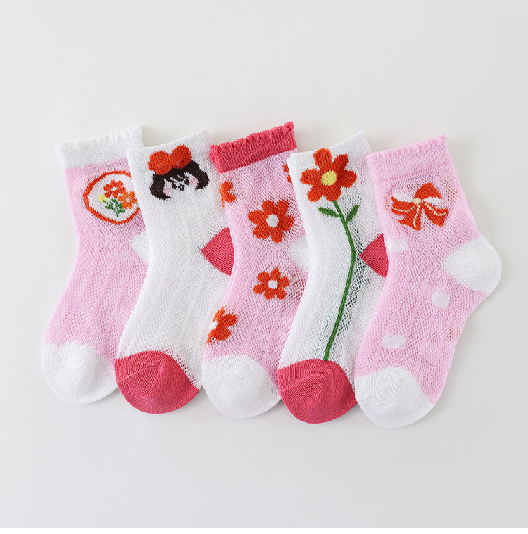 Bainuo 어린이 양말 봄과 여름 얇은 메쉬 통기성 코튼 딸기 공주 만화 귀여운 소녀 스포츠 양말