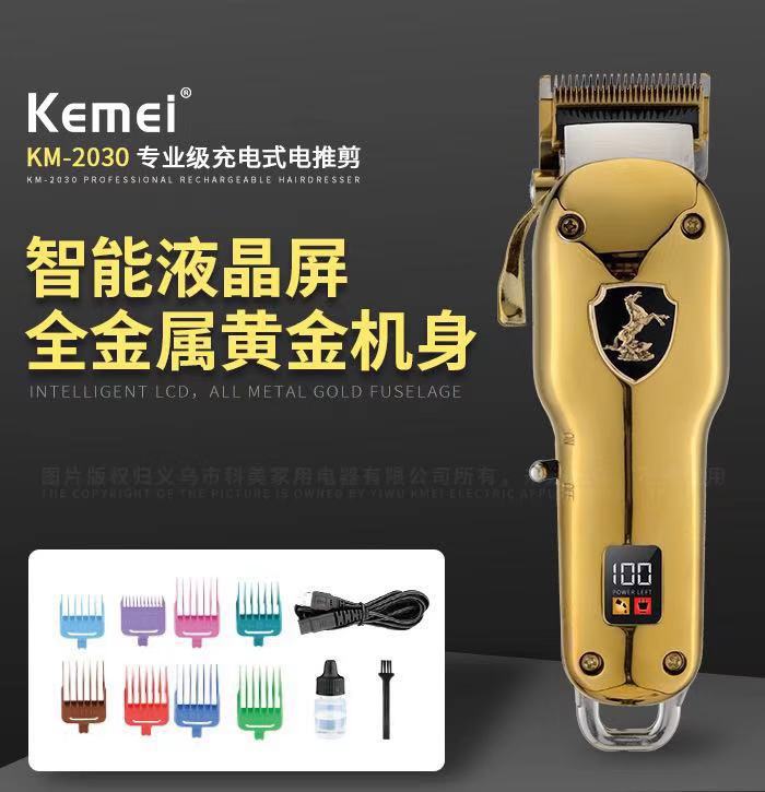 Kemei 헤어 클리퍼 KM-2030 모든 금속 바디 리튬 배터리 전기 클리퍼 국경 간 대외 무역 전기 클리퍼