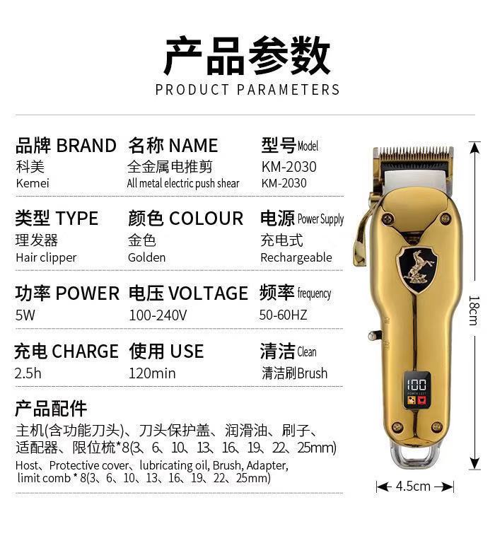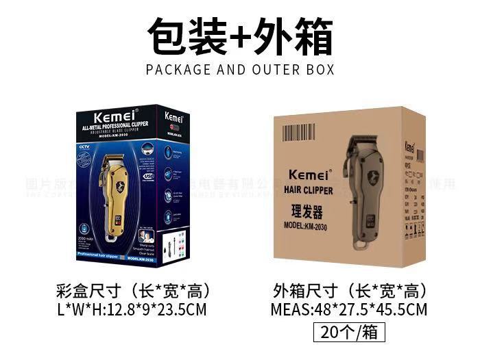 Kemei 헤어 클리퍼 KM-2030 모든 금속 바디 리튬 배터리 전기 클리퍼 국경 간 대외 무역 전기 클리퍼스토어 가기