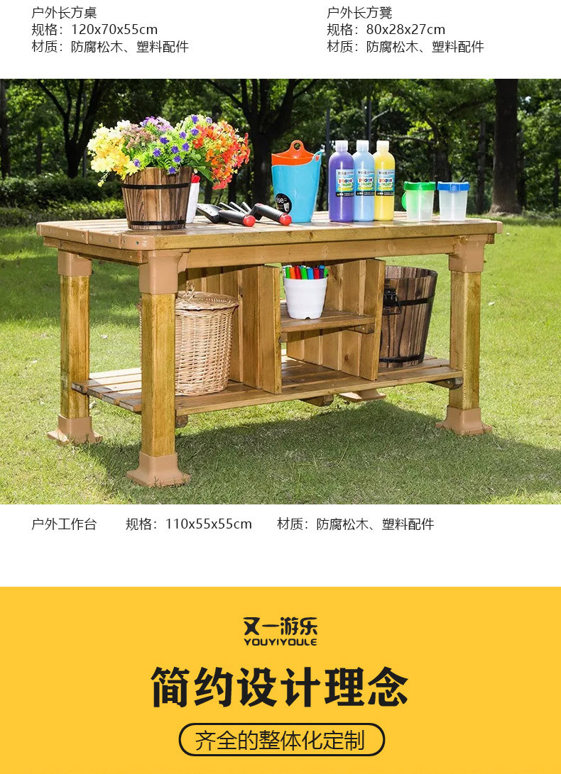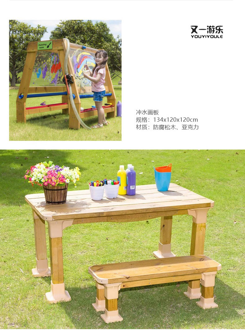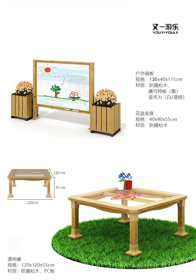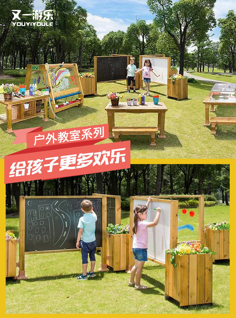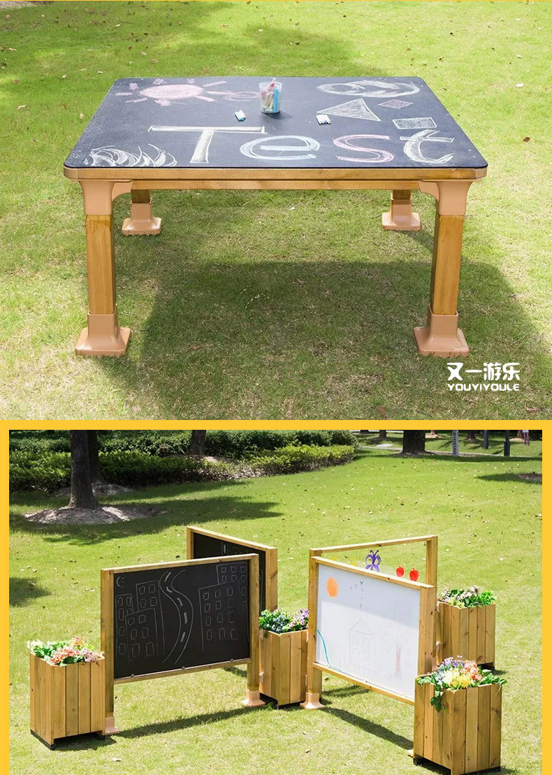 공장 직접 유치원 야외 교실 소 칠판 테이블 목제 아동 그림 유치원 테이블 의자 화분 이젤