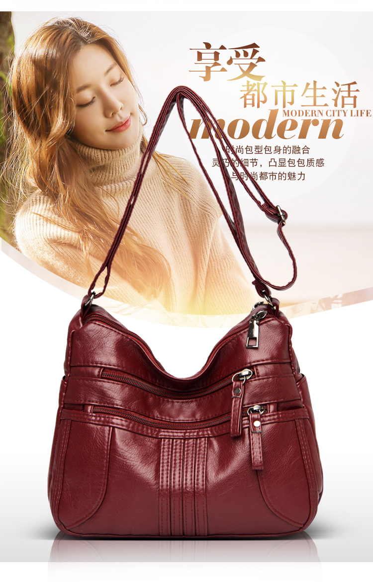 마더백 여성용 2021 새로운 유행 부드러운 가죽 중년 여성 가방 대용량 워시 가죽 다층 숄더 크로스바디 백