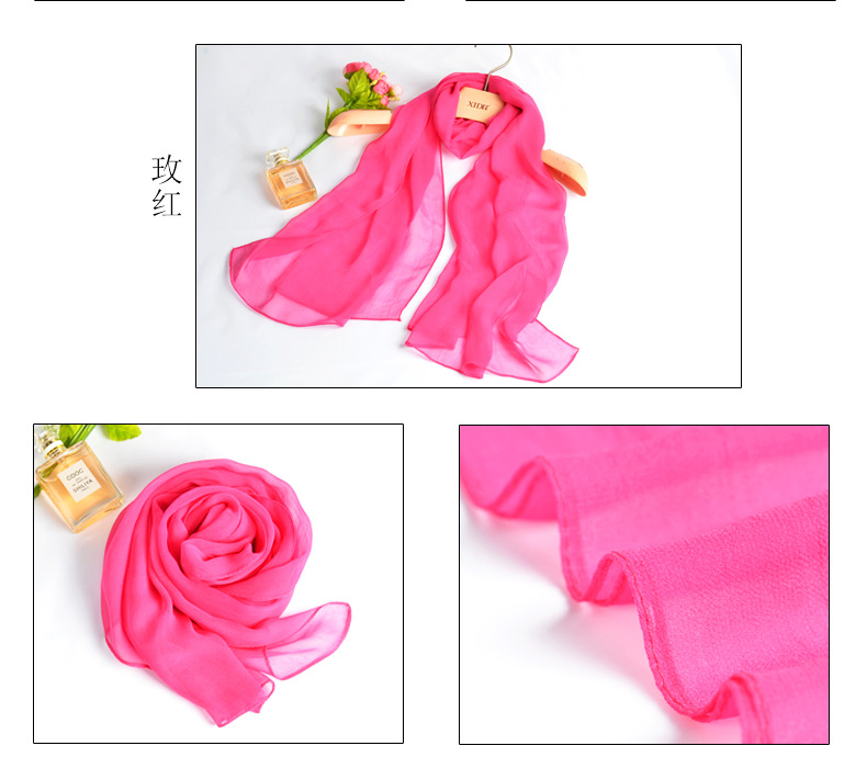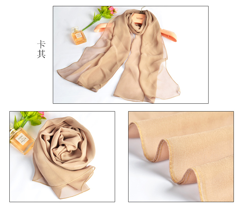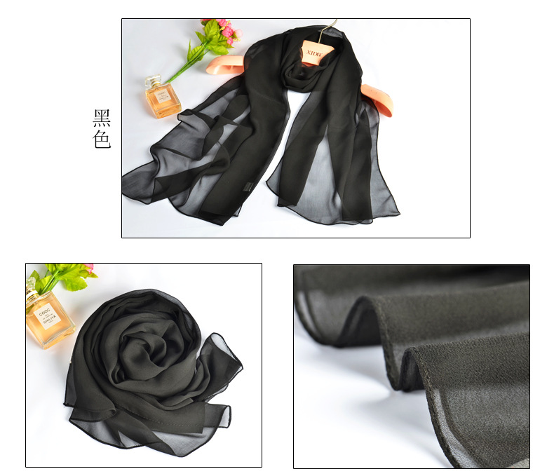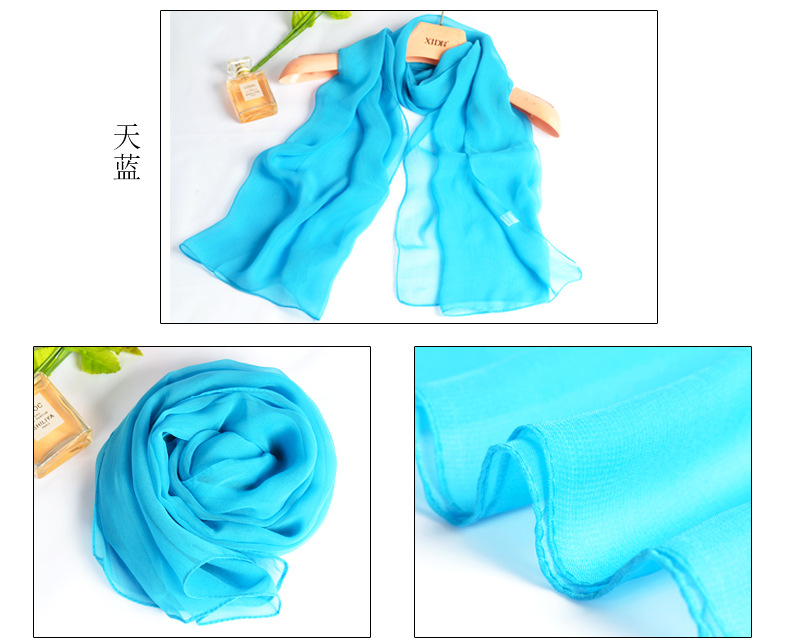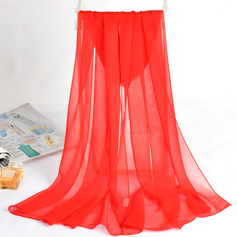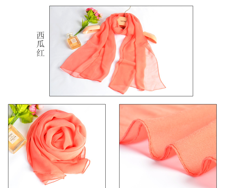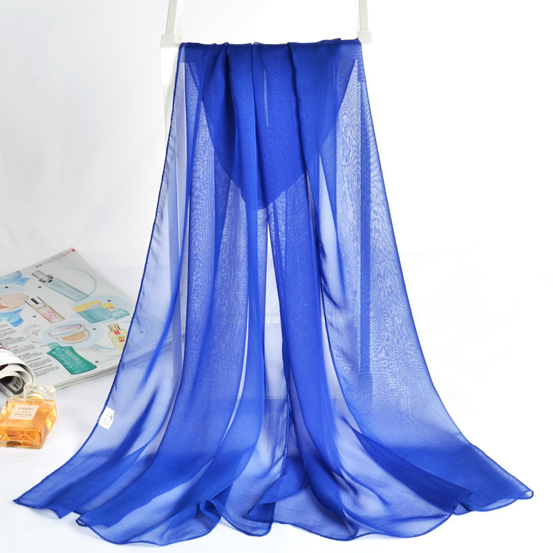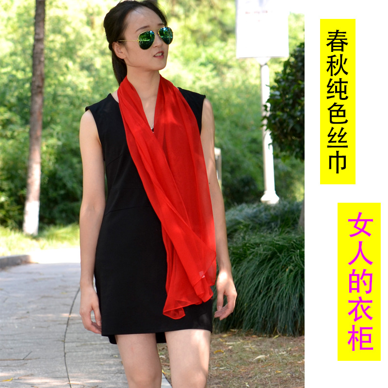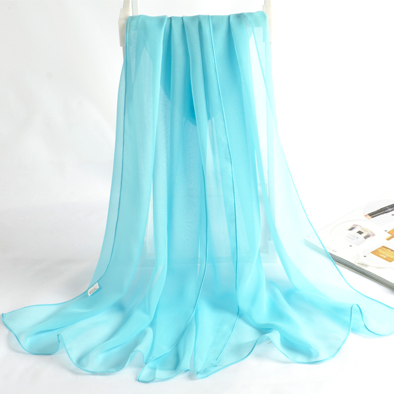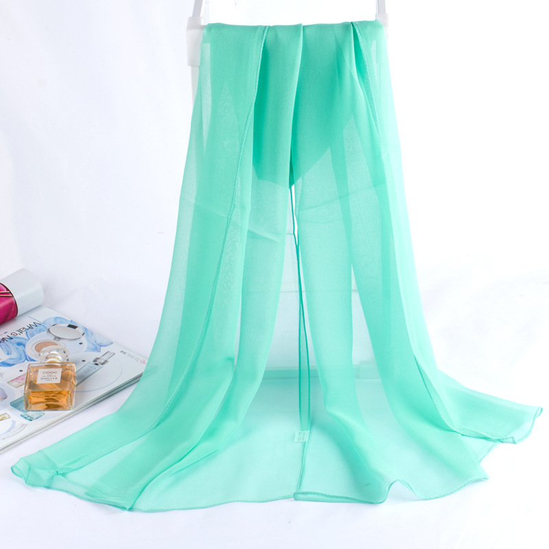 조제트 스카프 여성용 한국 예술 스카프 자외선 차단제 여름 모든 매치 롱 단색 스카프 바디 숄 스퀘어 댄스