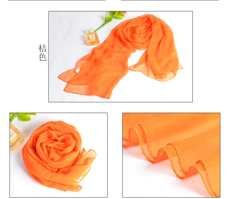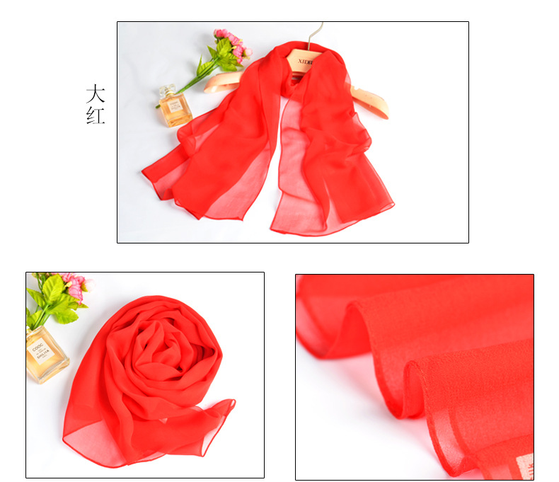조제트 스카프 여성용 한국 예술 스카프 자외선 차단제 여름 모든 매치 롱 단색 스카프 바디 숄 스퀘어 댄스스토어 가기