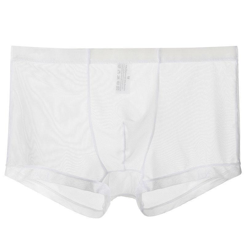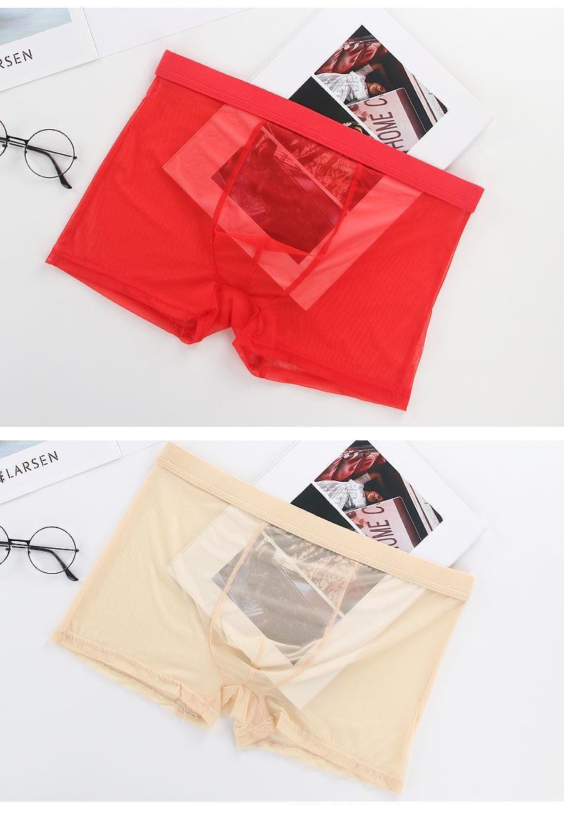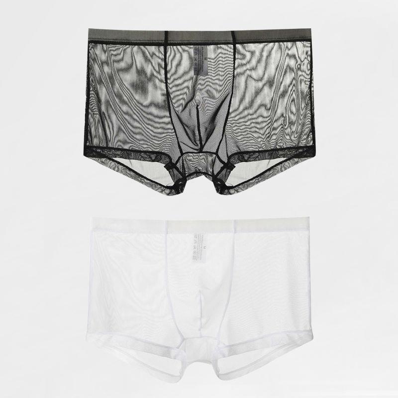 메쉬 아이스 실크 속옷 남자의 평면 각도 얇은 플러스 뚱뚱한 남자의 투명 진짜 통기성 섹시한 복서 바지스토어 가기