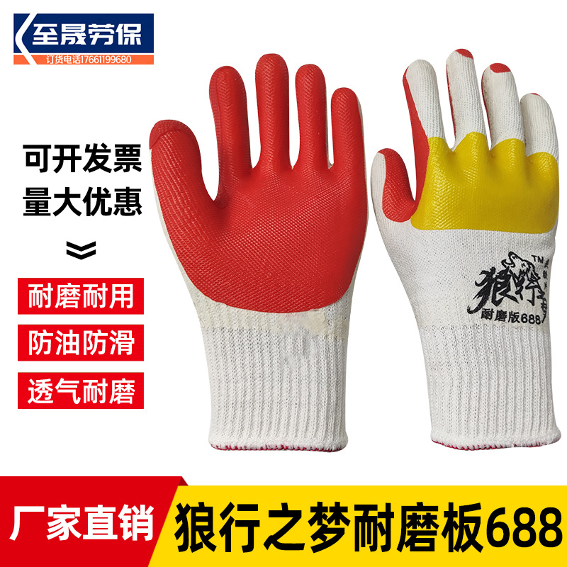 도매 두꺼운 대형 미끄럼 방지 내마모성 핸드백 옐로우 울프 꿈 내마모성 버전 688 레드 소프트 필름 장갑스토어 가기