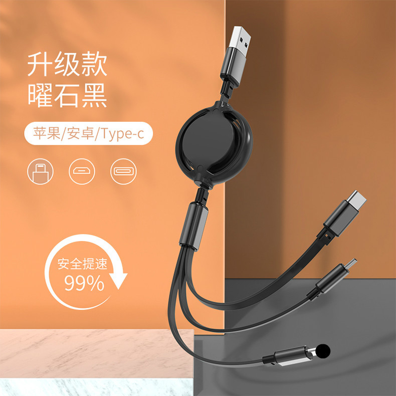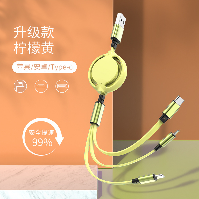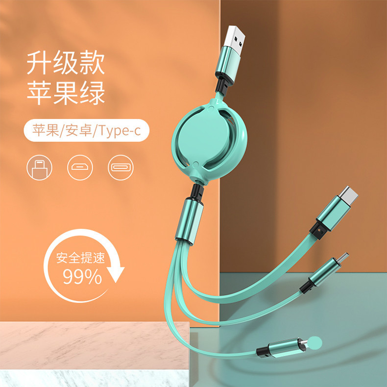 【产品亮点】:伸缩一拖三设计、耐拉伸,防缠绕,智能分流,三头同时充电,多彩马卡龙设计,高端大气上档次。