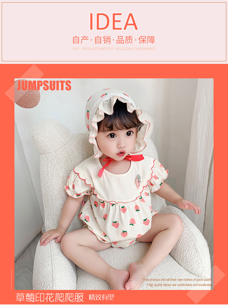 2024 아기 여름 새로운 올인원 세트 신생아 아기 소녀 인쇄 후드 삼각형 가방 방귀 세트 등반 2256스토어 가기