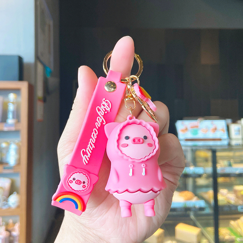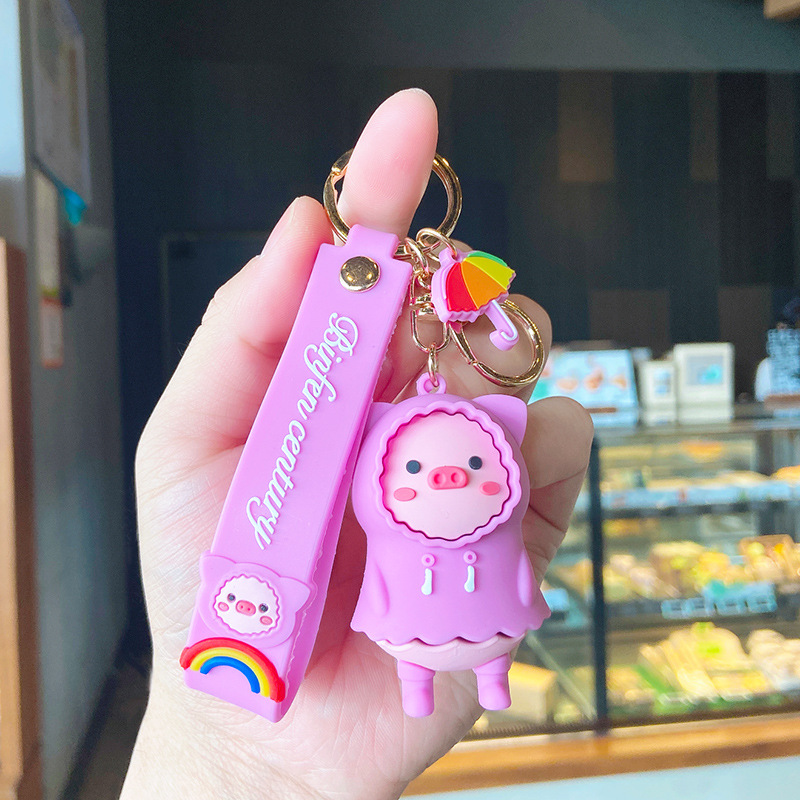 비옷돼지 PVC 열쇠고리 만화 캐릭터 가방 장식품 열쇠고리 자동차 열쇠고리 귀여운
