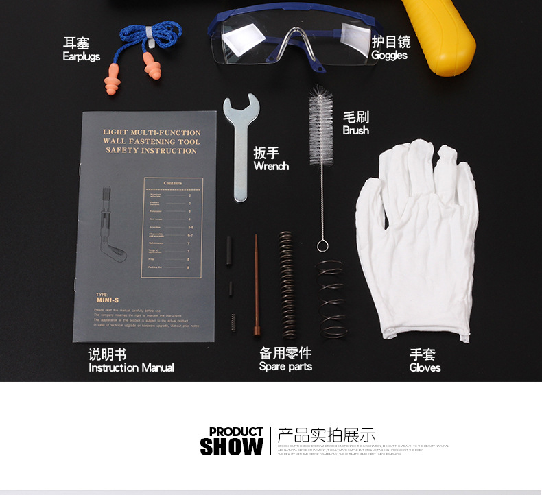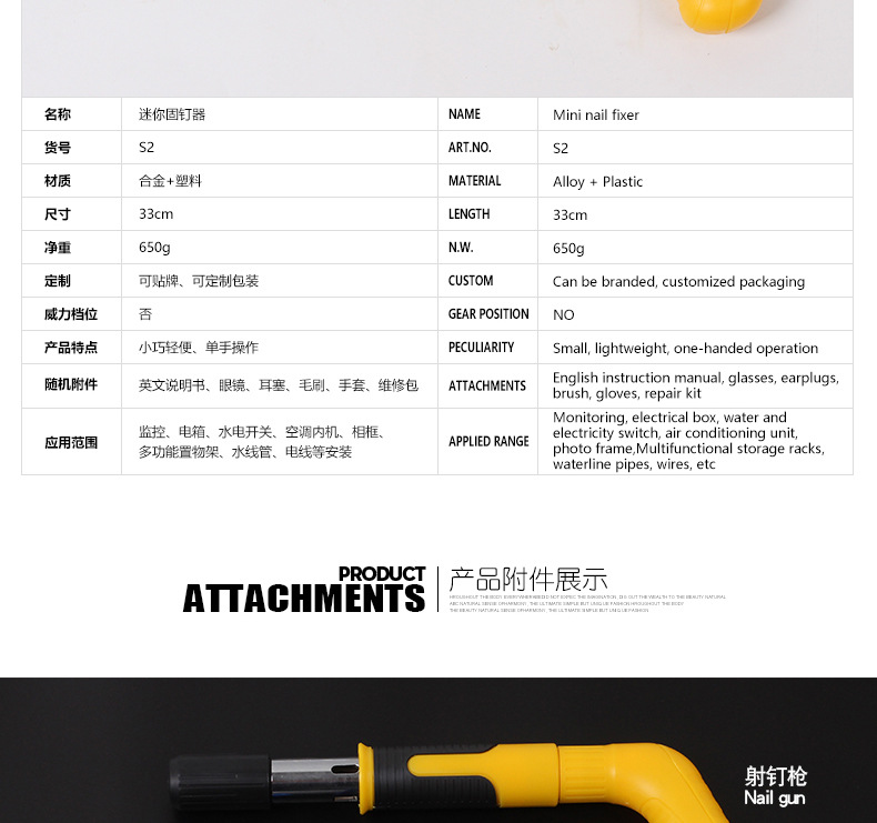 • S2 미니 네일 건 도구 상자 버전은 20 개의 손톱을 보냅니다