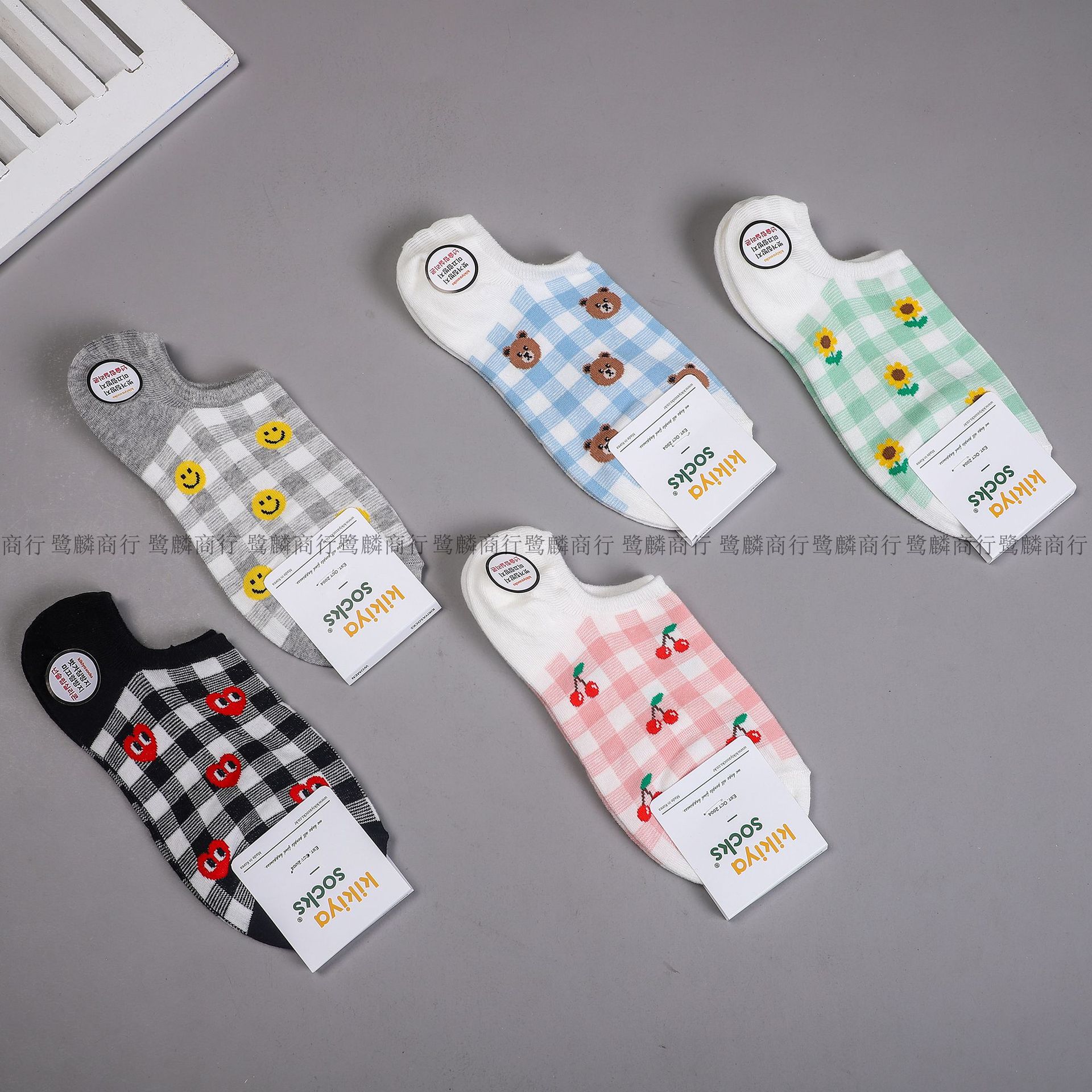 Wa050 한국 봄과 여름 새로운 귀여운 작은 격자 무늬 해바라기 사랑 체리 얕은 입 보트 양말스토어 가기