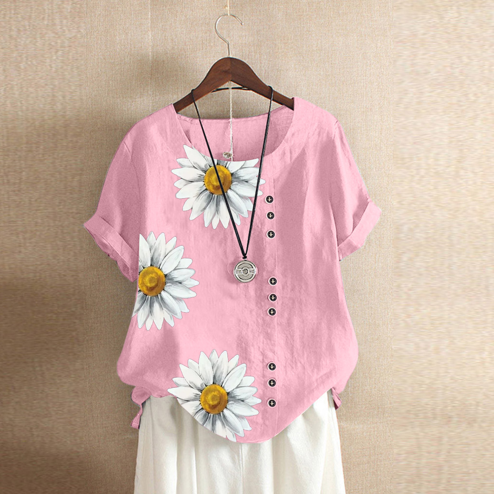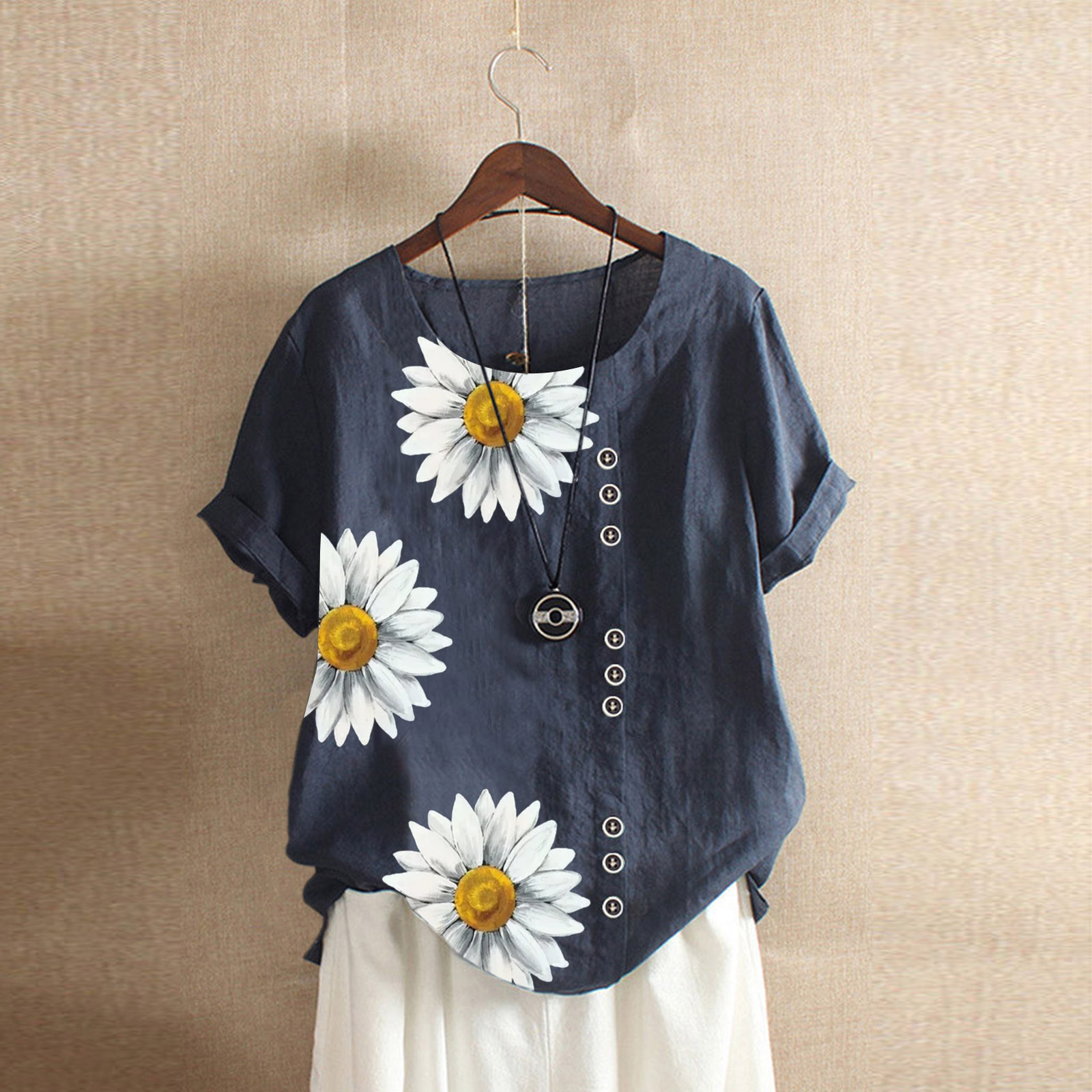 유럽과 미국 크로스 보더 2021 아마존 소원 빈티지 면과 린넨 인쇄 느슨한 캐주얼 셔츠 여성의 최고 재고 여성스토어 가기