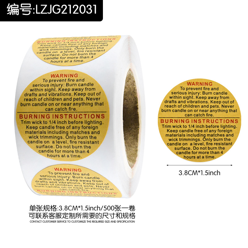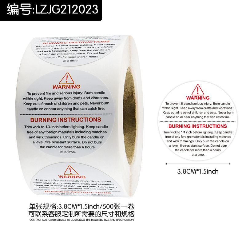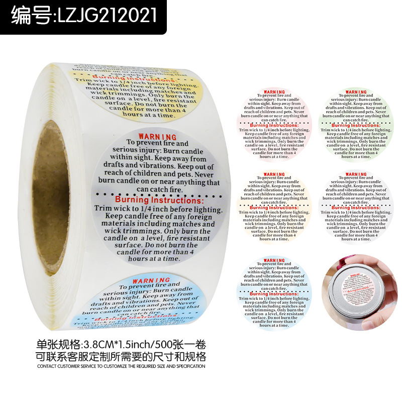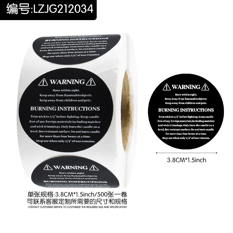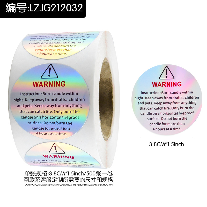아마존 이베이 국경 해외 무역 라벨 종이 양초 경고 스티커 DIY 양초 액세서리 레이저 경고 라벨