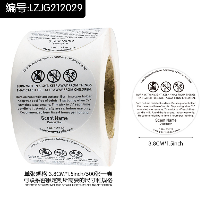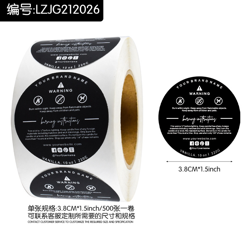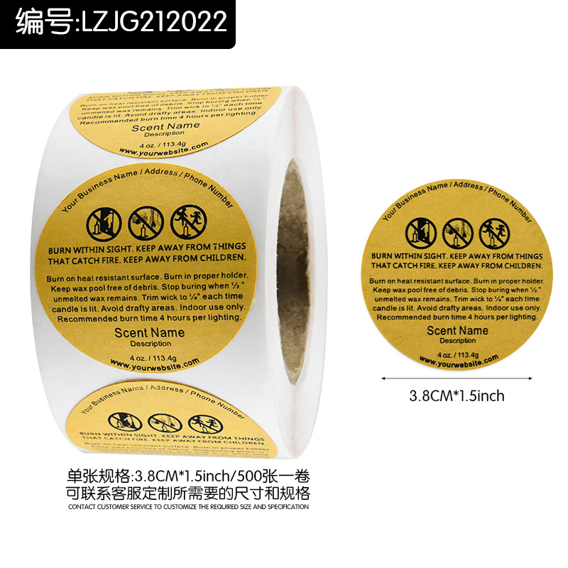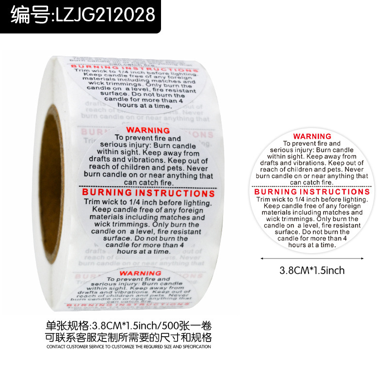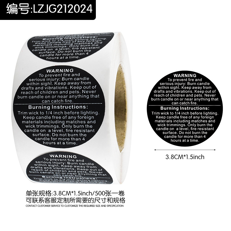 아마존 이베이 국경 해외 무역 라벨 종이 양초 경고 스티커 DIY 양초 액세서리 레이저 경고 라벨