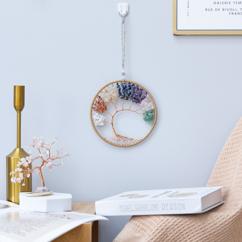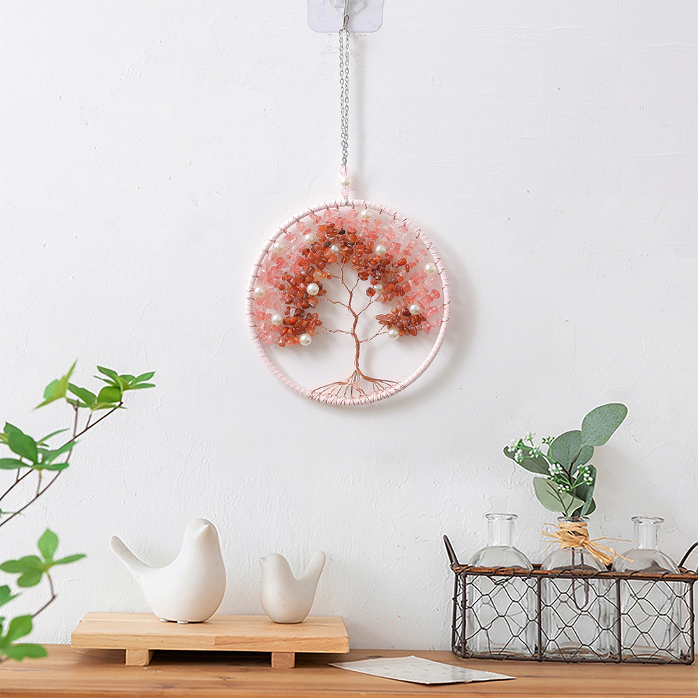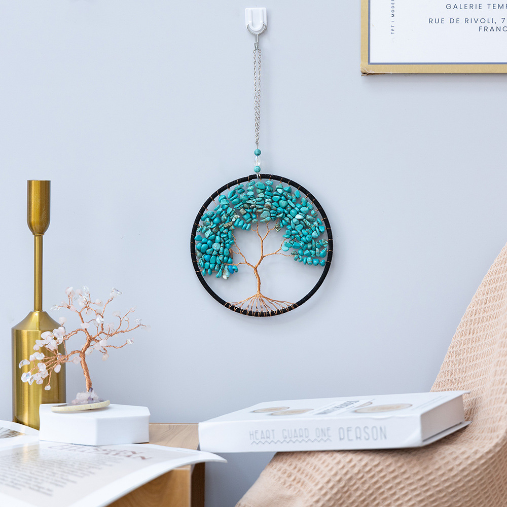 새로운 다채로운 돌 생명의 나무 직조 홈 선물 구리 와이어 자갈 생명의 나무 나무 펜던트 제조 업체 도매스토어 가기