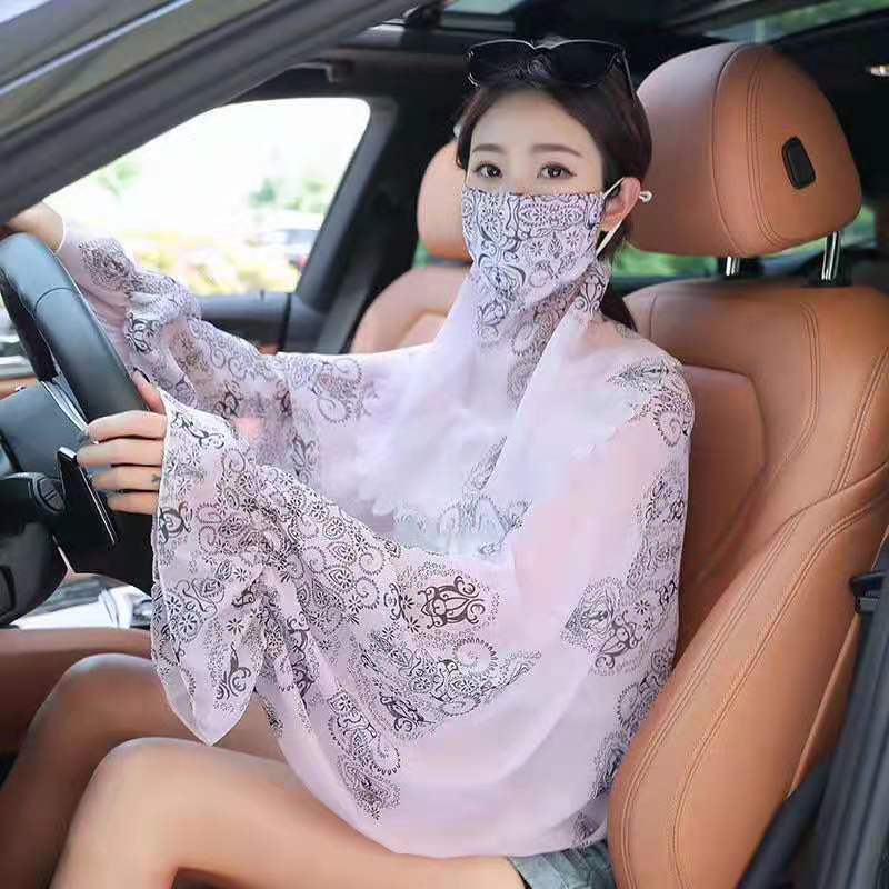 자외선 차단제 숄 여성용 여름 얇은 운전 사이클링 긴 소매 UV 보호 숄 베일 목 보호 마스크 통합 자외선 차단제 의류스토어 가기