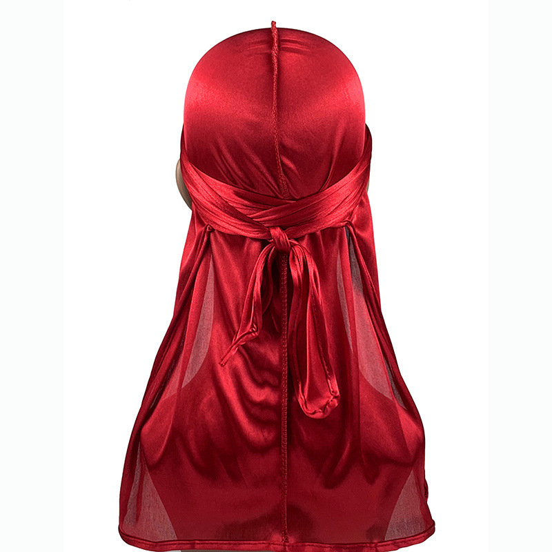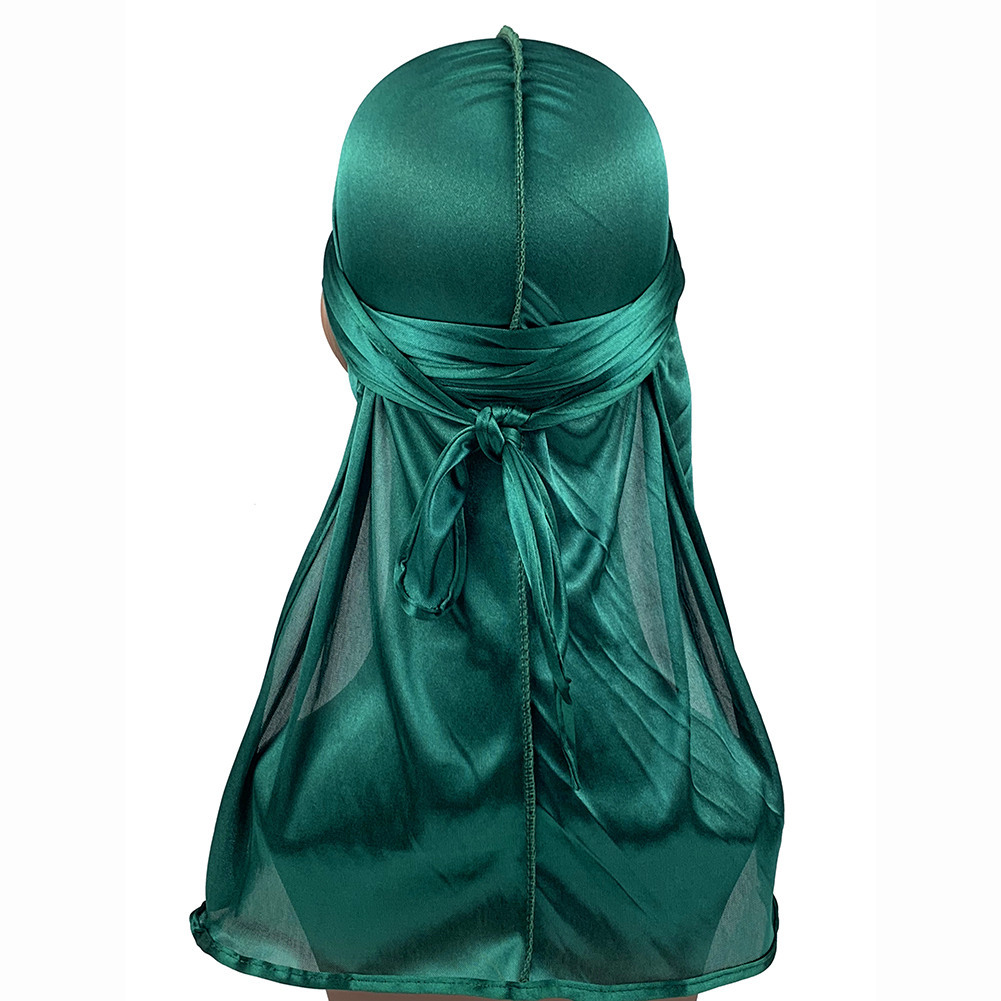 인기 판매 모델 단색 테두리 실크 긴 꼬리 땋은 해적 모자 탄성 터번 모자 durag스토어 가기