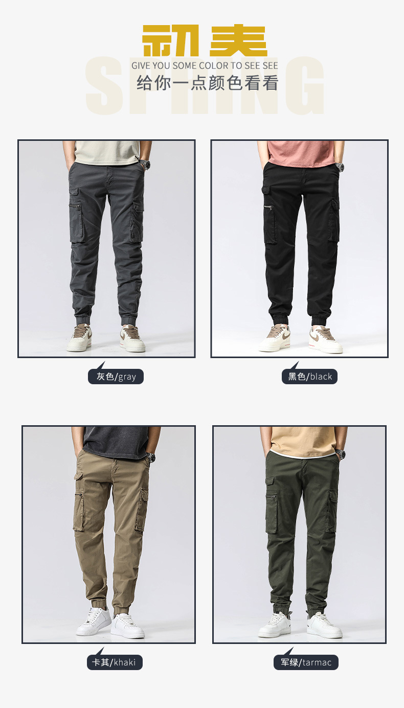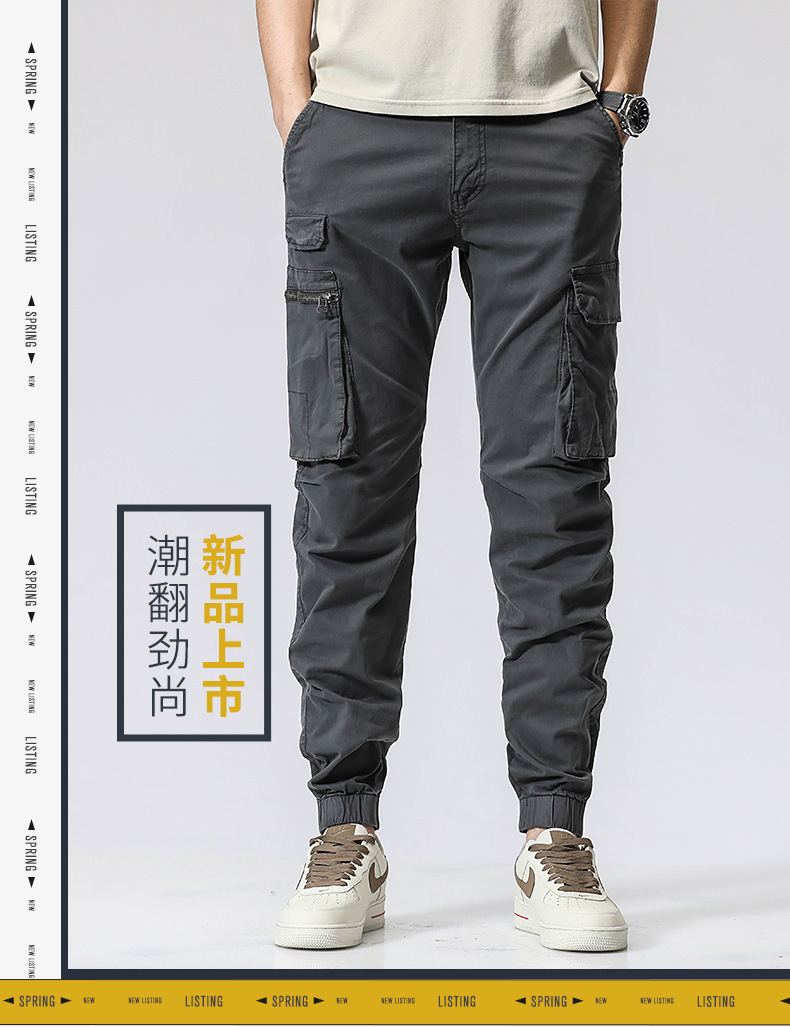 여름 남성 스포츠 캐주얼 레깅스 팬츠 트렌디 브랜드 내구성 워싱 작업복 바지 다중 포켓 롱 팬츠 해외 아마존스토어 가기