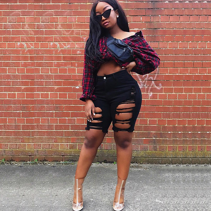 이베이 아마존 유럽과 미국 2021 여름 찢어진 데님 바지 여자의 비치 스트레이트 스트레치 면 다리 바지스토어 가기