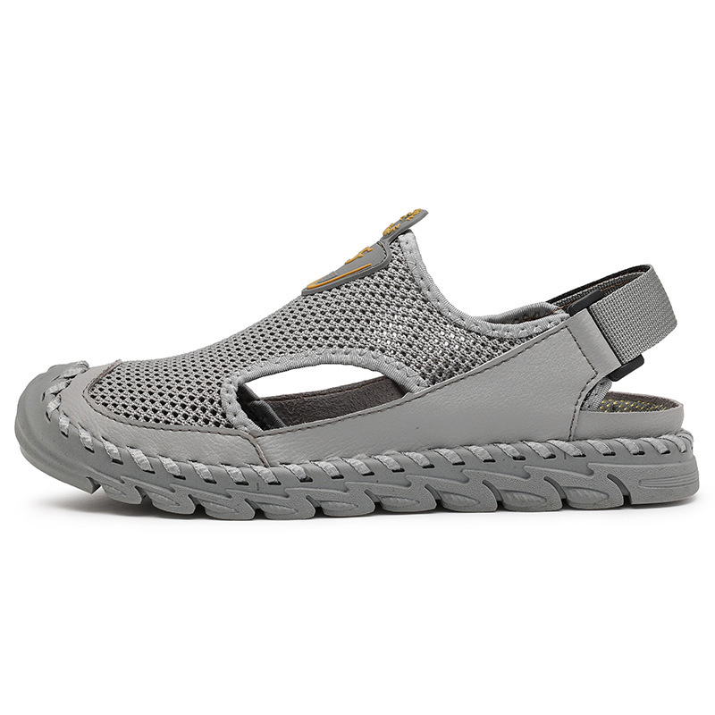 2021 여름 새로운 남성용 메쉬 샌들 부드러운 밑창 통기성 야외 캐주얼 중공 발가락 플라이 짠 메쉬 신발스토어 가기
