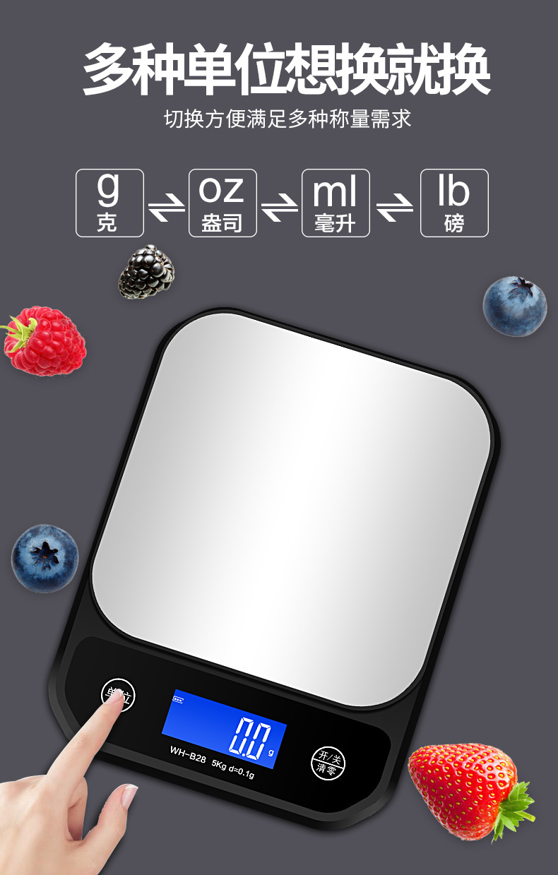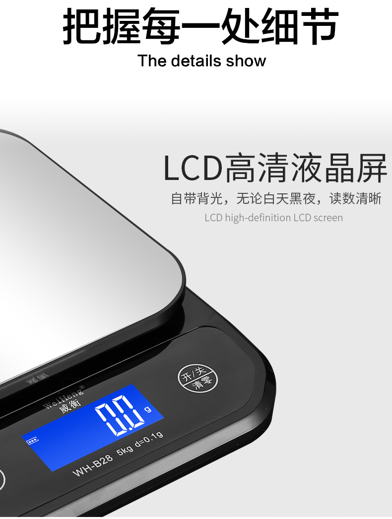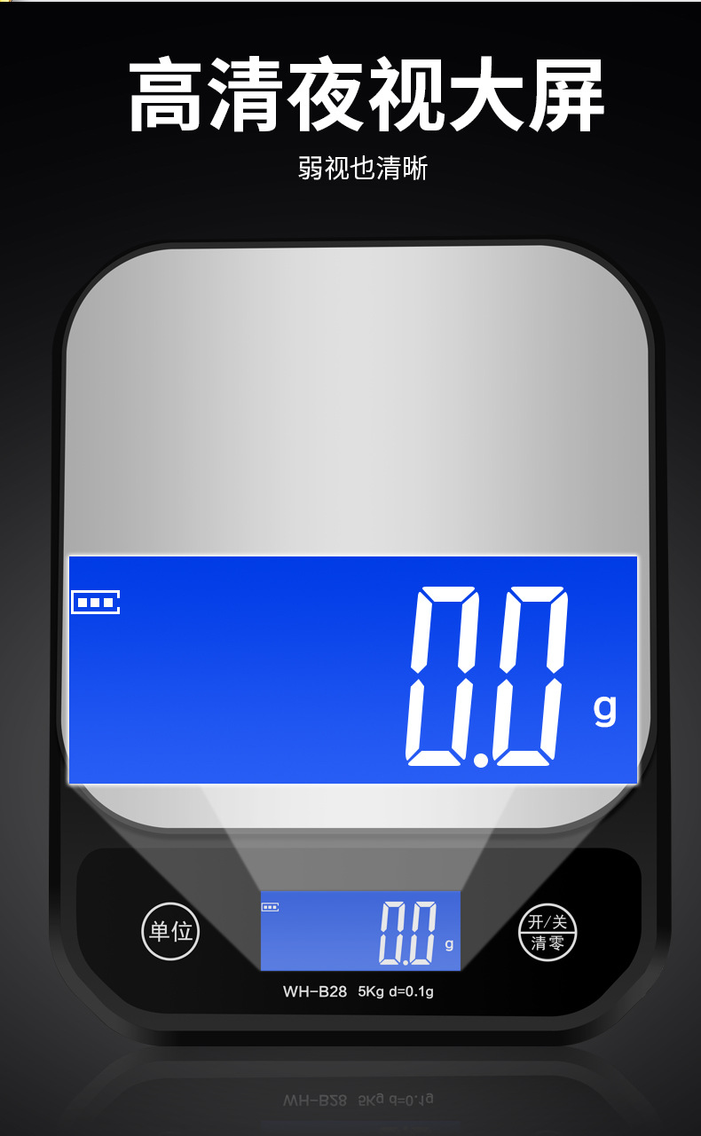 威衡工厂WH-B28充电全防水厨房秤烘焙秤食物中药克数称奶茶电子秤