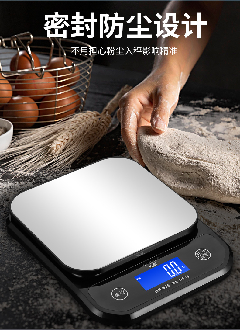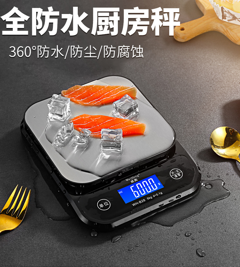 WeiHeng威衡WH-B28充电防水不锈钢家用厨房秤10KG烘培电子秤