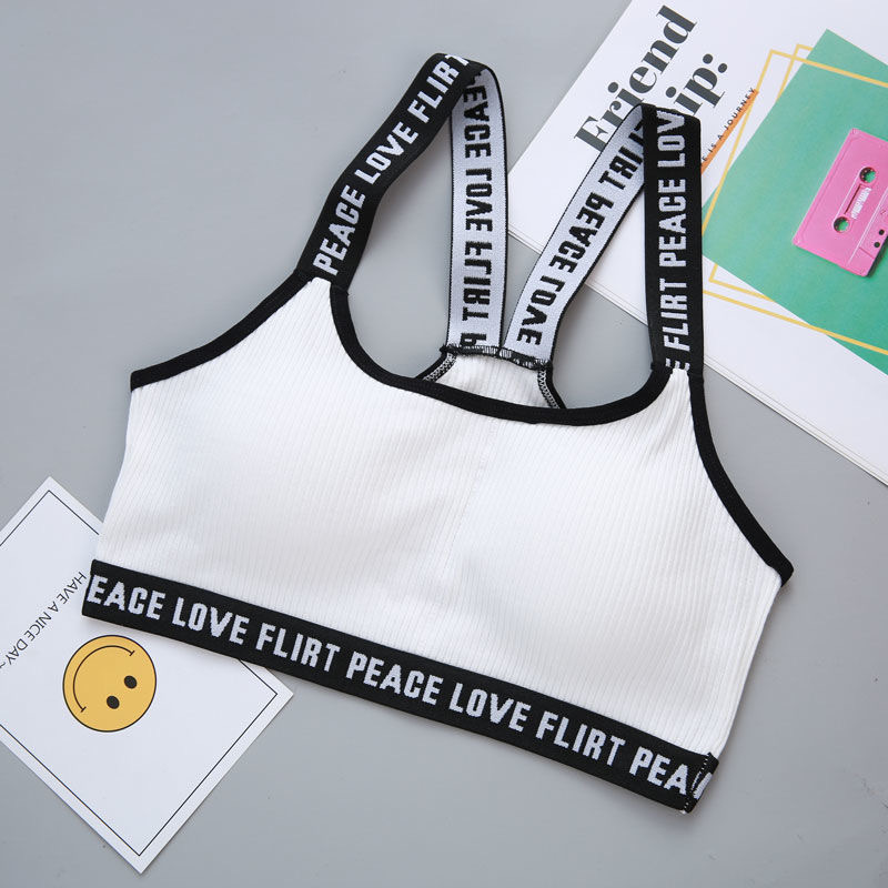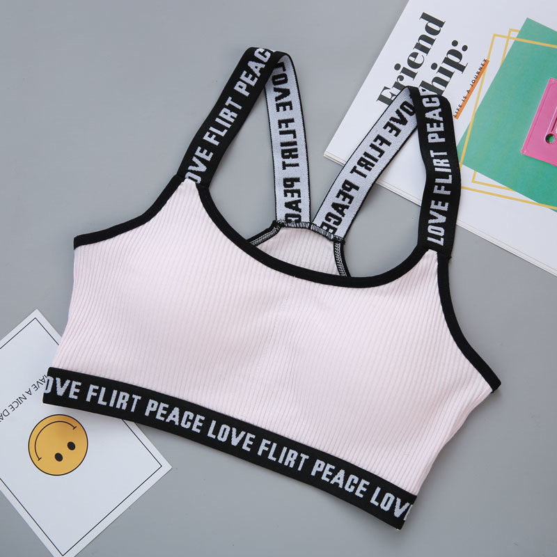 영어 편지 어깨 스트랩 소녀의 백업 안티 워킹 아름다운 백 원피스 컵 개발 브라 비 테 스포츠 속옷