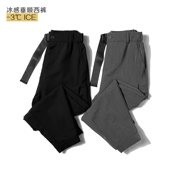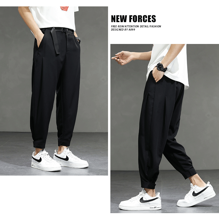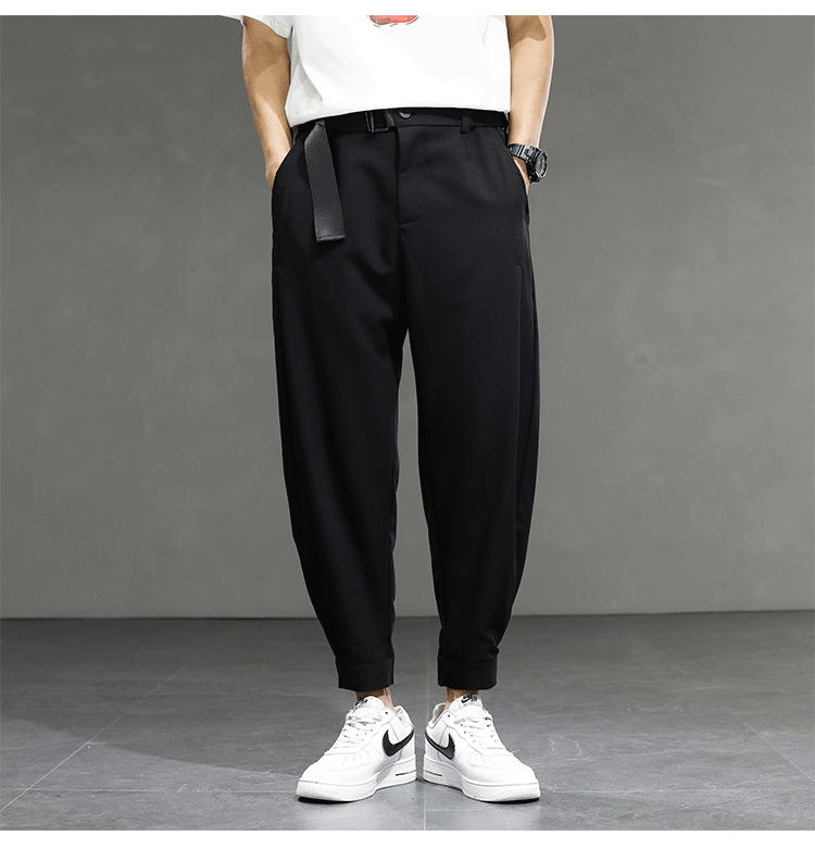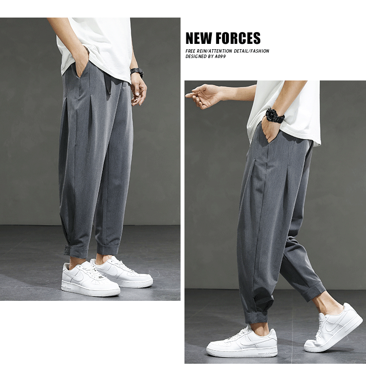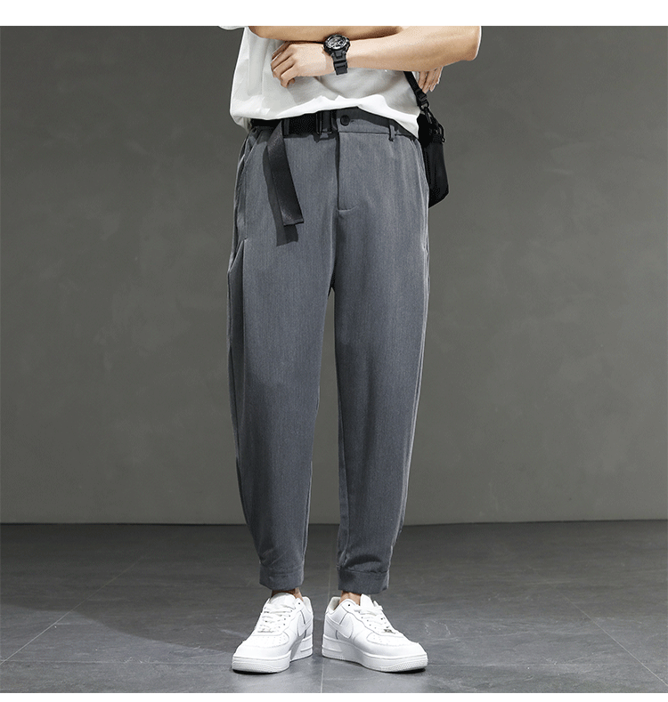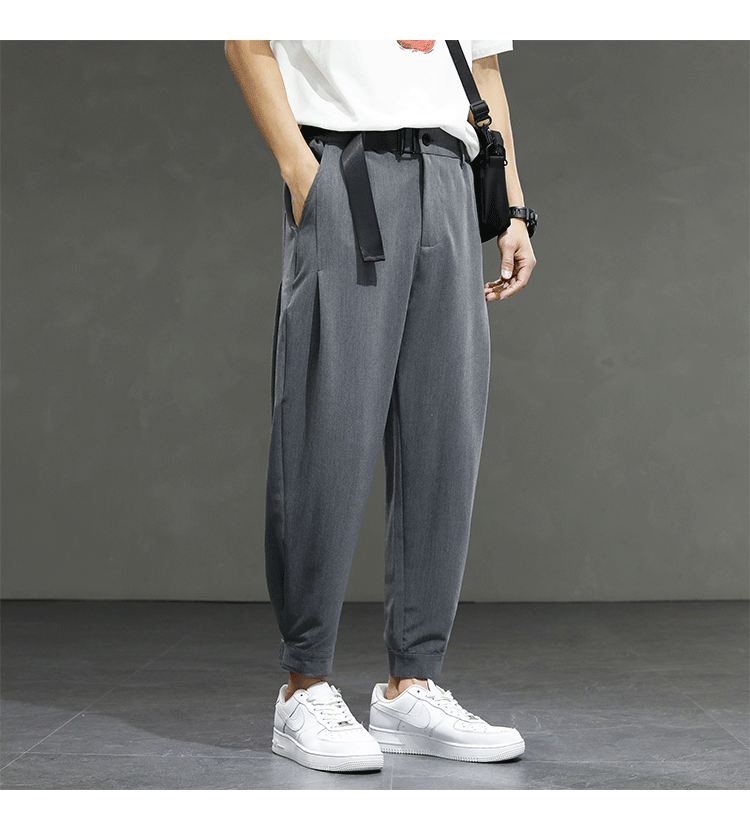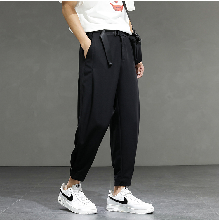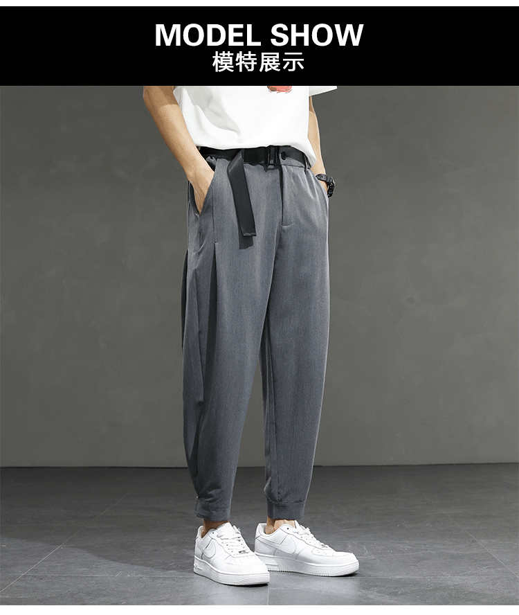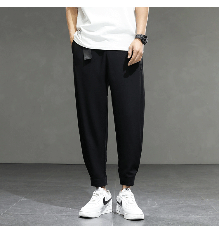 2021 여름 착용 아이스 실크 드레이프 얇은 바지 스포츠 남성용 느슨한 바지 캐주얼 크롭 바지 청소년 패션 남성 바지