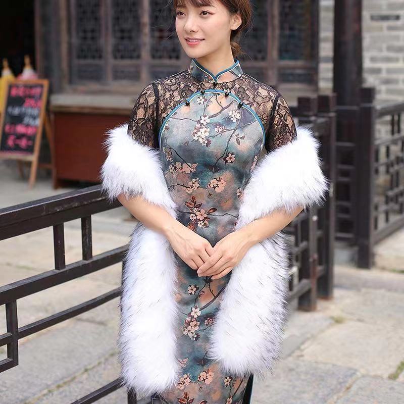 현물 도매 해외 배송 설날 크리스마스 모피 장식품 따뜻한 스카프 인조 모피 롱 스카프 모조 여우털