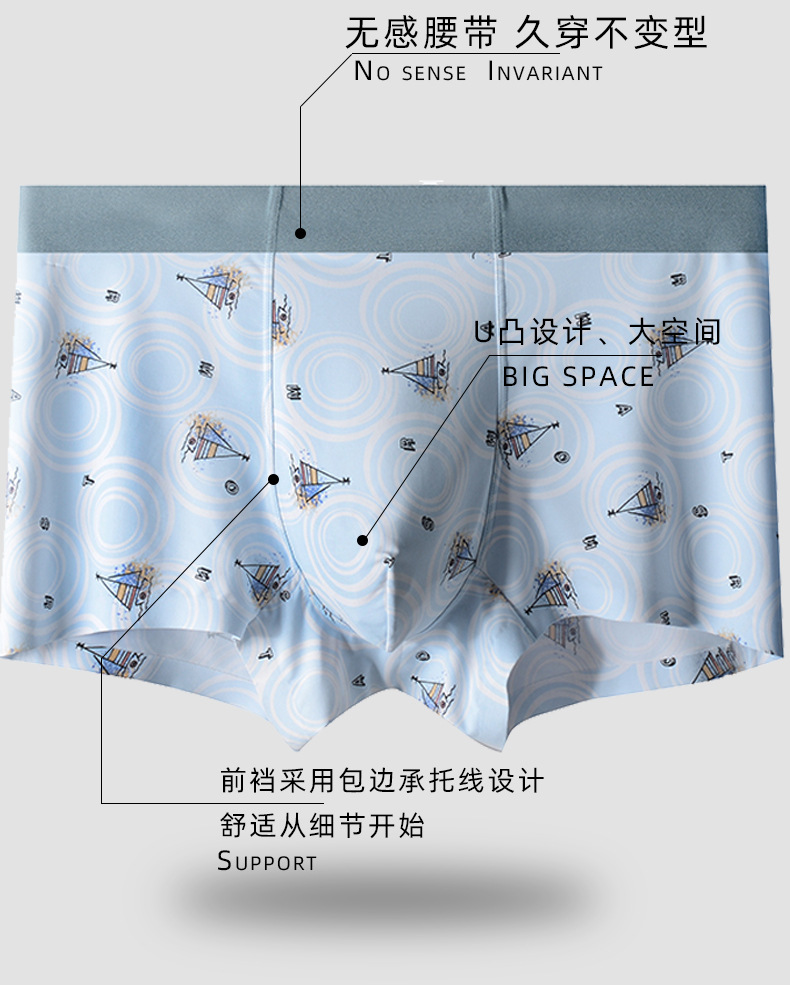 아이스 실크 속옷 남성용 미드 웨이스트 통기성 추적없는 플랫 코너 항균 남성 속옷 4 코너 남성 최고 섹시 속옷스토어 가기