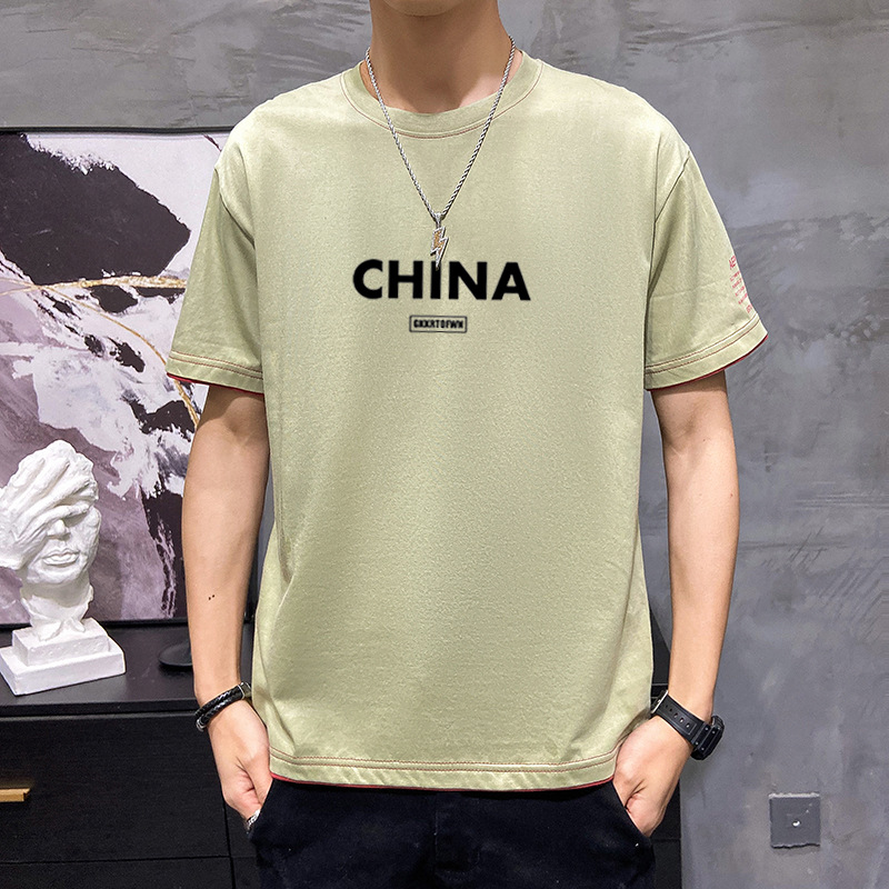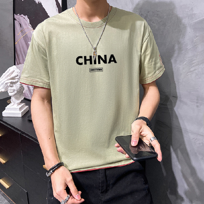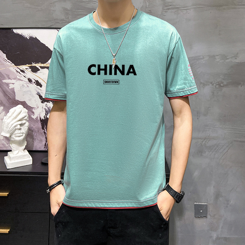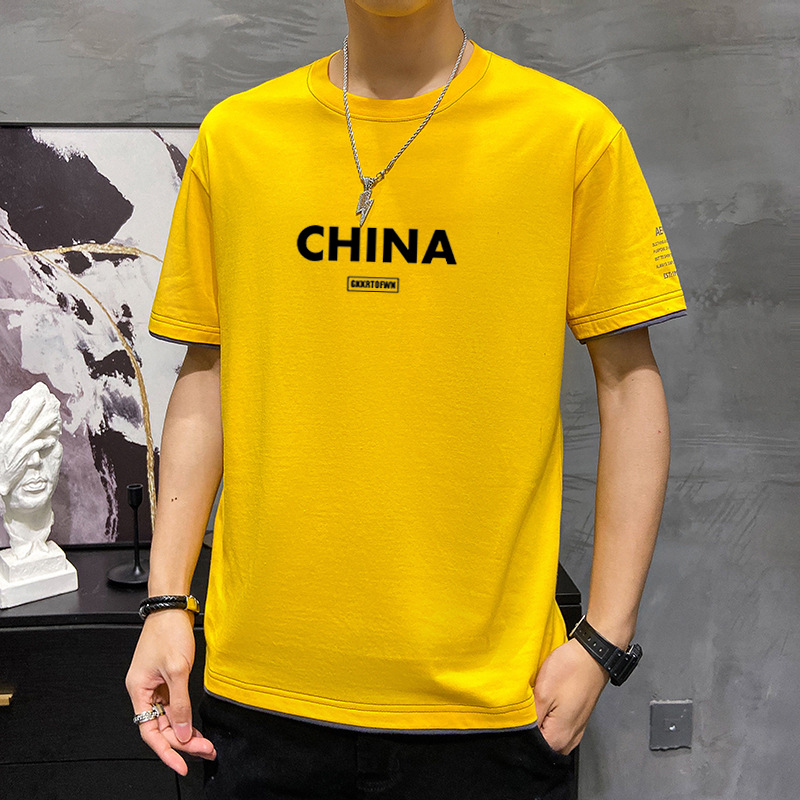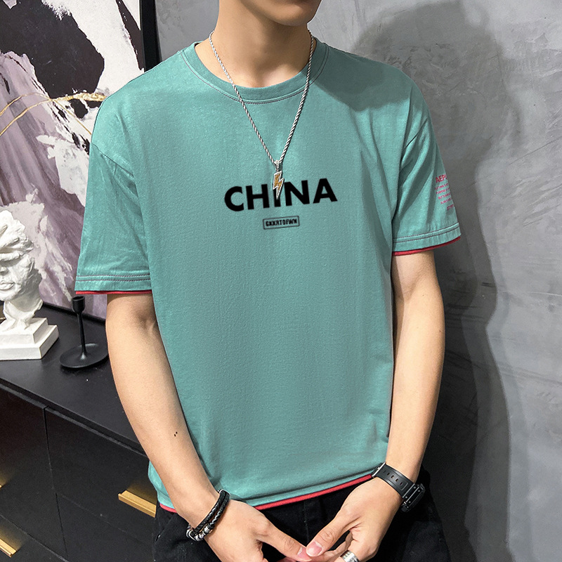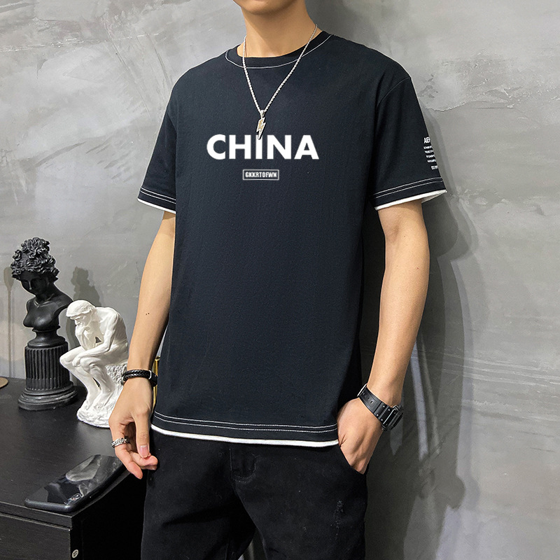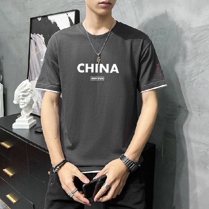 2021 여름 새로운 T 면 느슨한 청소년 반팔 티셔츠 남성용 가짜 투피스 반팔 탑 베이스 셔츠 남성 의류스토어 가기