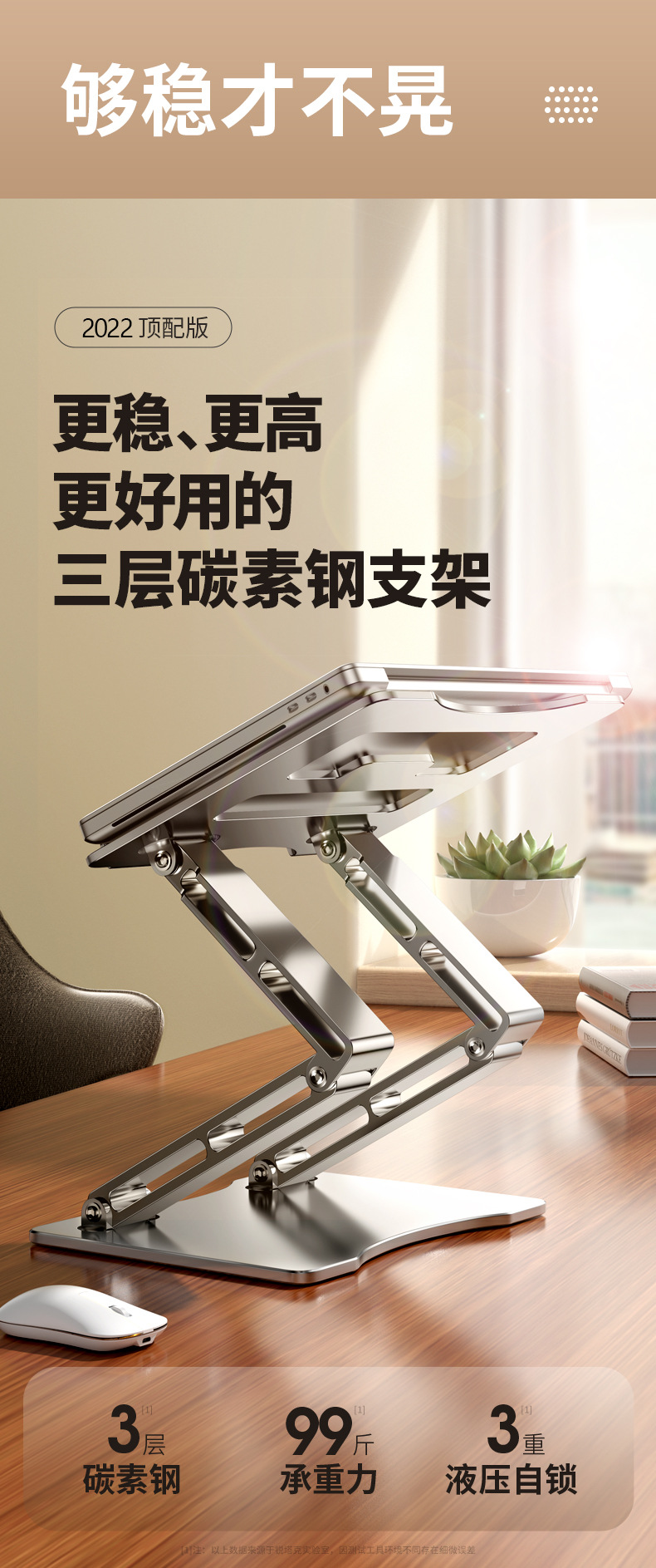 새로운 노트북 스탠드 데스크탑 높이 교수형 수직 리프트 카본 스틸 노트북 스탠드