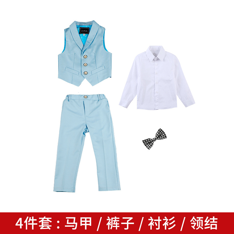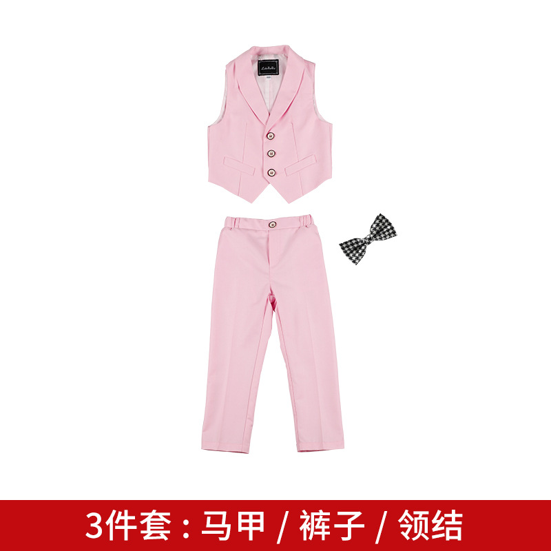 봄과 여름 2023 새로운 한국식 단색 조끼 세트 어린이 세트 호스트 쇼 리틀 젠틀맨 원피스 3 종 세트
