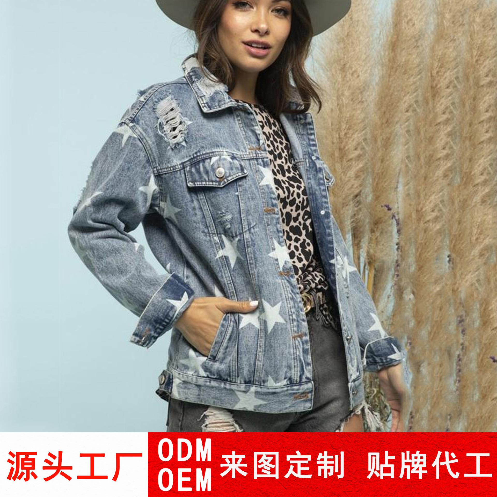 독립 역 가을과 겨울 데님 코트 찢어진 별 느슨한 재킷 여자의 아마존 유럽과 미국 크로스 보더 여성의 탑스토어 가기