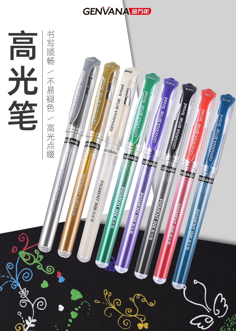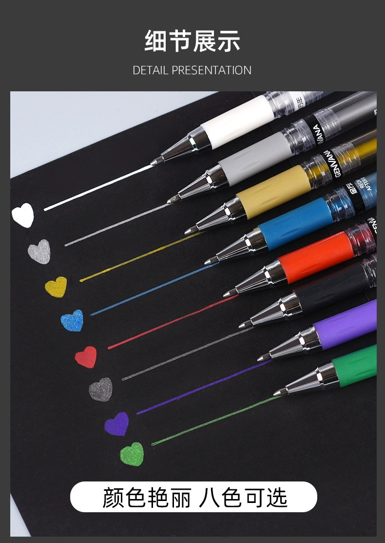 [8 색] 흰색 손으로 그린 아트 페인팅 펜 1.0mm 금색과 실버 사인 펜 라인 스케치 손 계정 하이라이트 펜스토어 가기