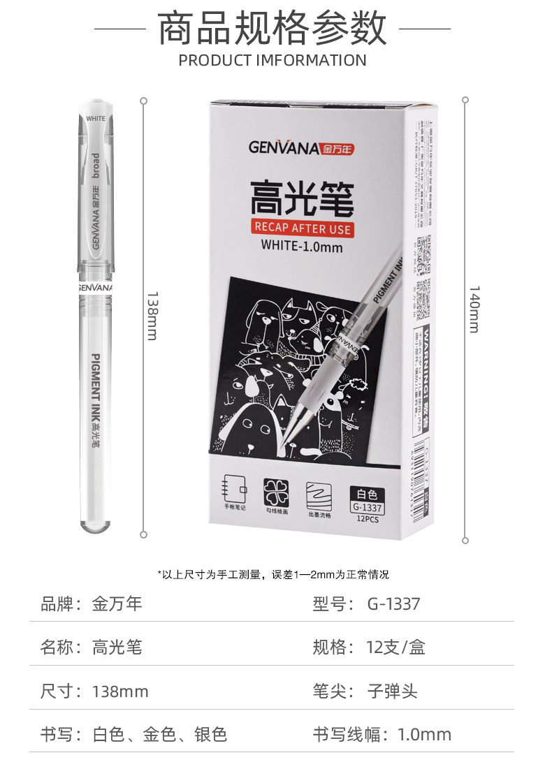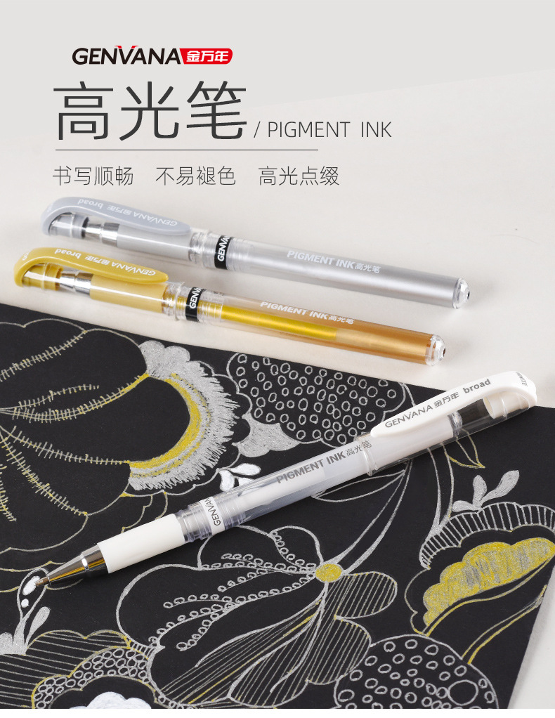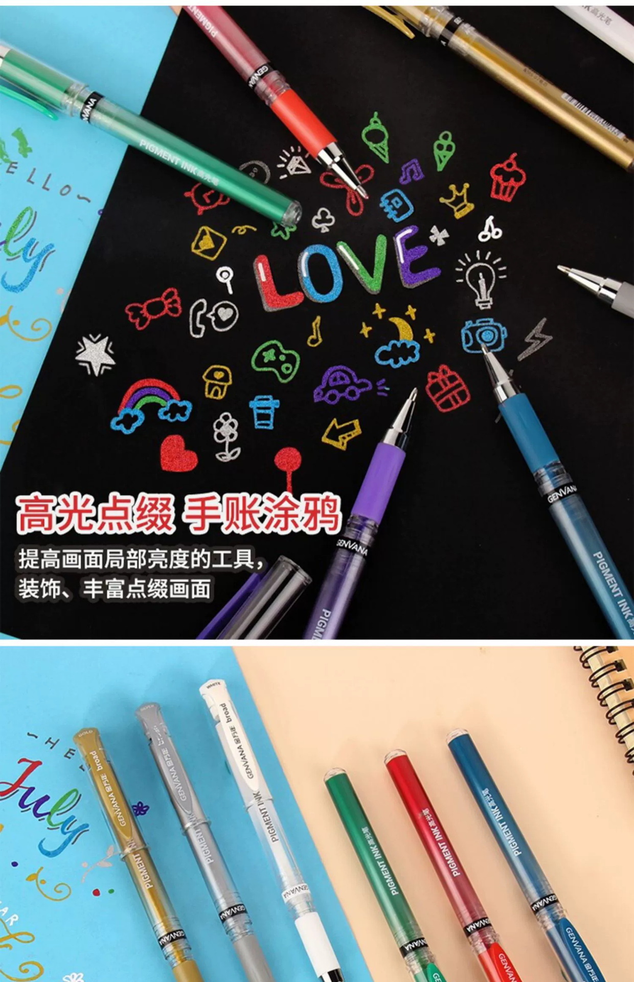 [8 색] 흰색 손으로 그린 아트 페인팅 펜 1.0mm 금색과 실버 사인 펜 라인 스케치 손 계정 하이라이트 펜