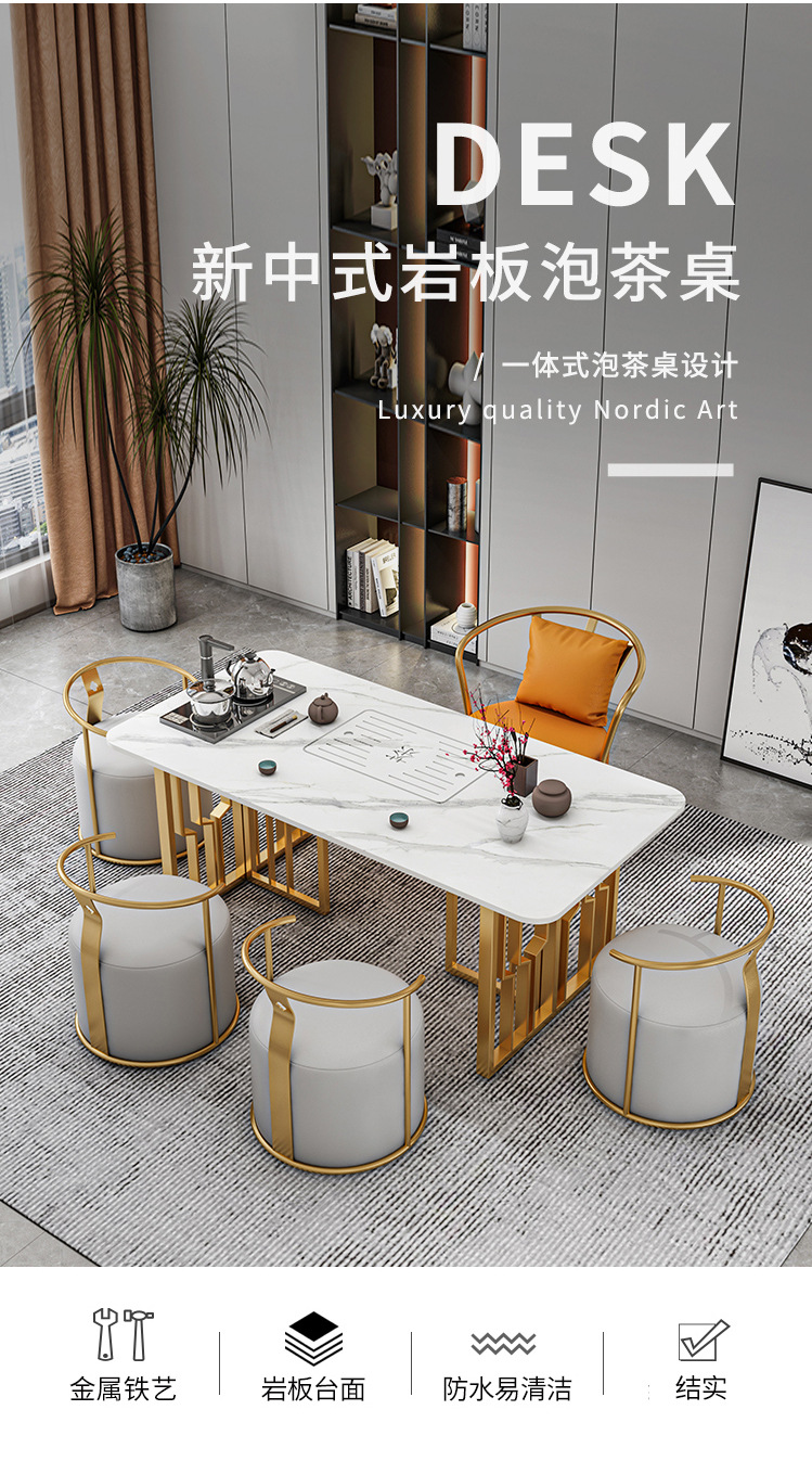 새로운 중국 락 플레이트 티 테이블과 의자 조합 작은 아파트 거실 발코니 쿵푸 커피 테이블 사무실 통합 티 테이블